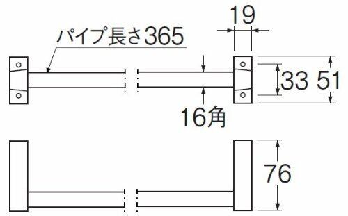 365mmの角型タオル掛けです。パイプの一辺:16mm