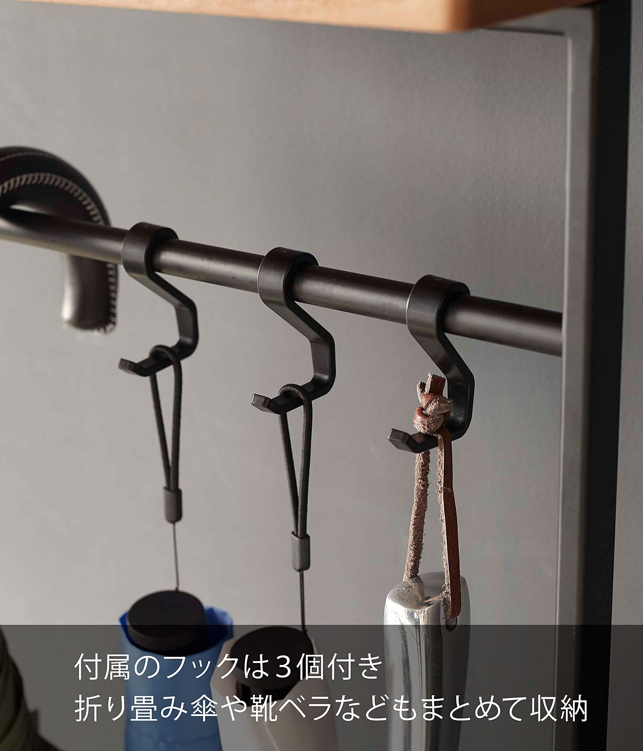 付属のフックを使えば、折り畳み傘や靴べらなどの収納場所に困る小物をまとめて収納できます。