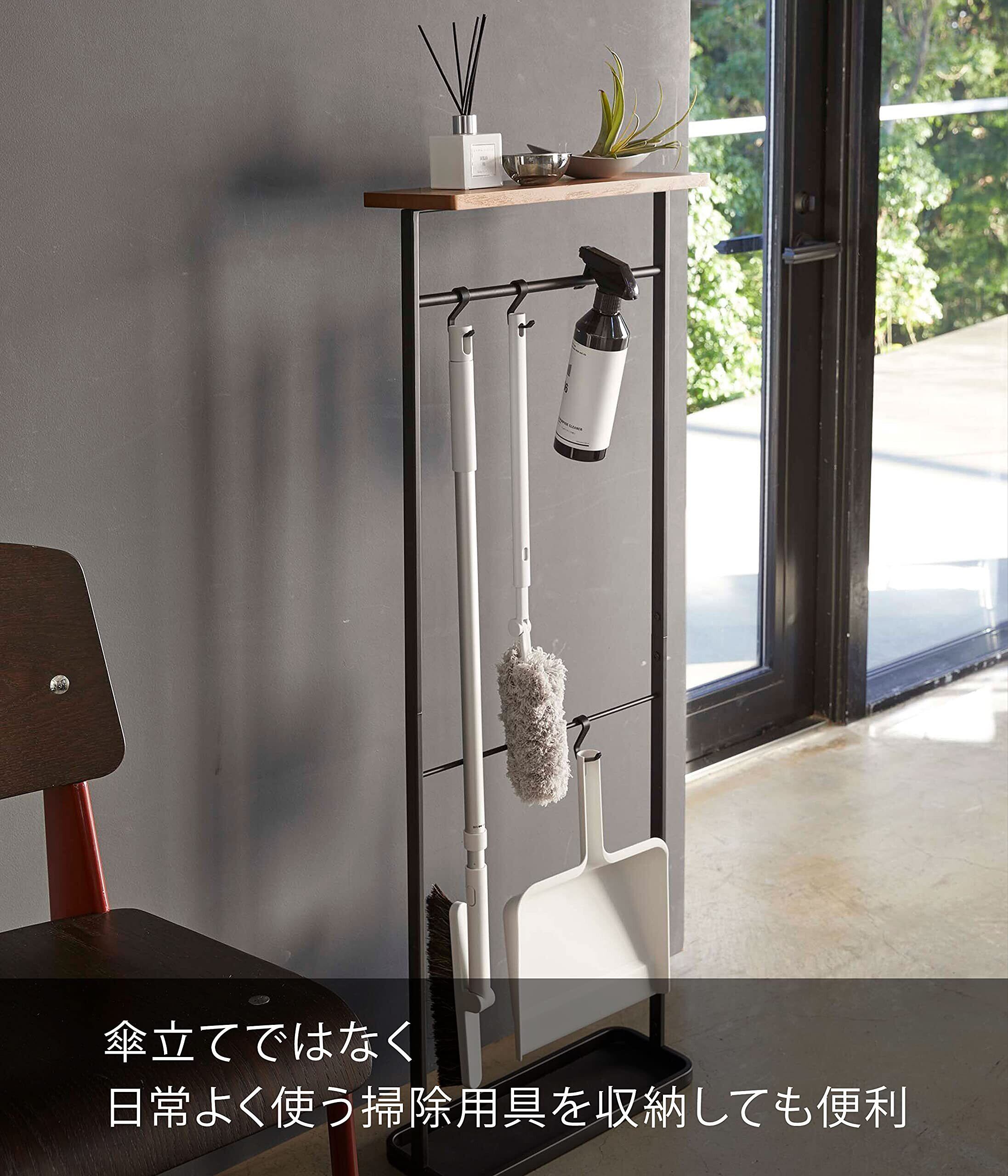 山崎実業(Yamazaki) 天板付き引っ掛け傘立て ブラック 約W40XD15XH112cm タワー 折り畳み傘も収納 小物が置ける天板付き フック付き 4971