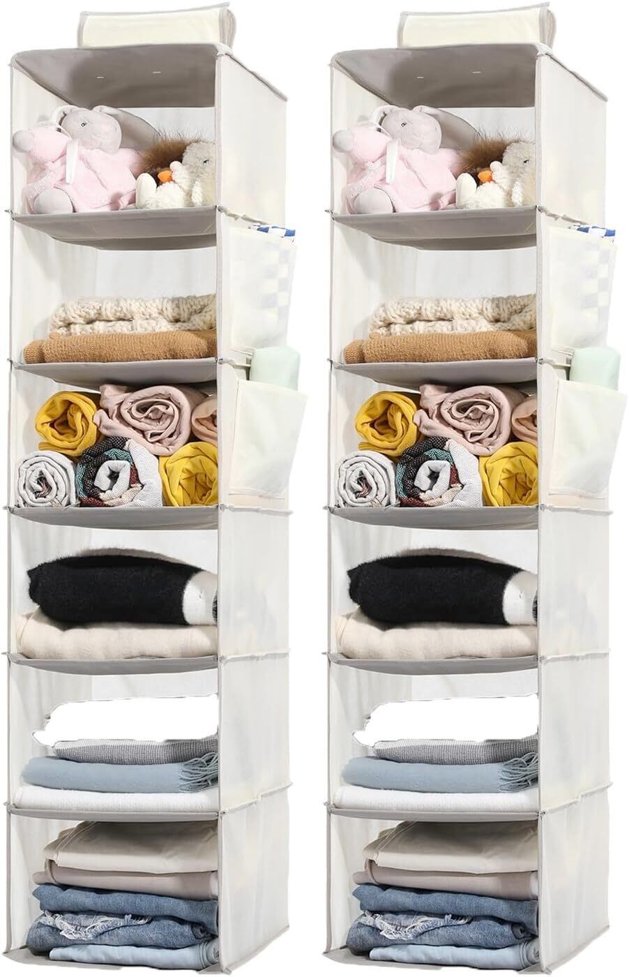 YRCBEHFU 吊り下げ収納 6段 2点 クローゼット 衣類ラック 帽子/鞄 収納ラック 大容量 取付簡単 折りたたみ 収納/旅行/出張 30x30x120cm ベージュ