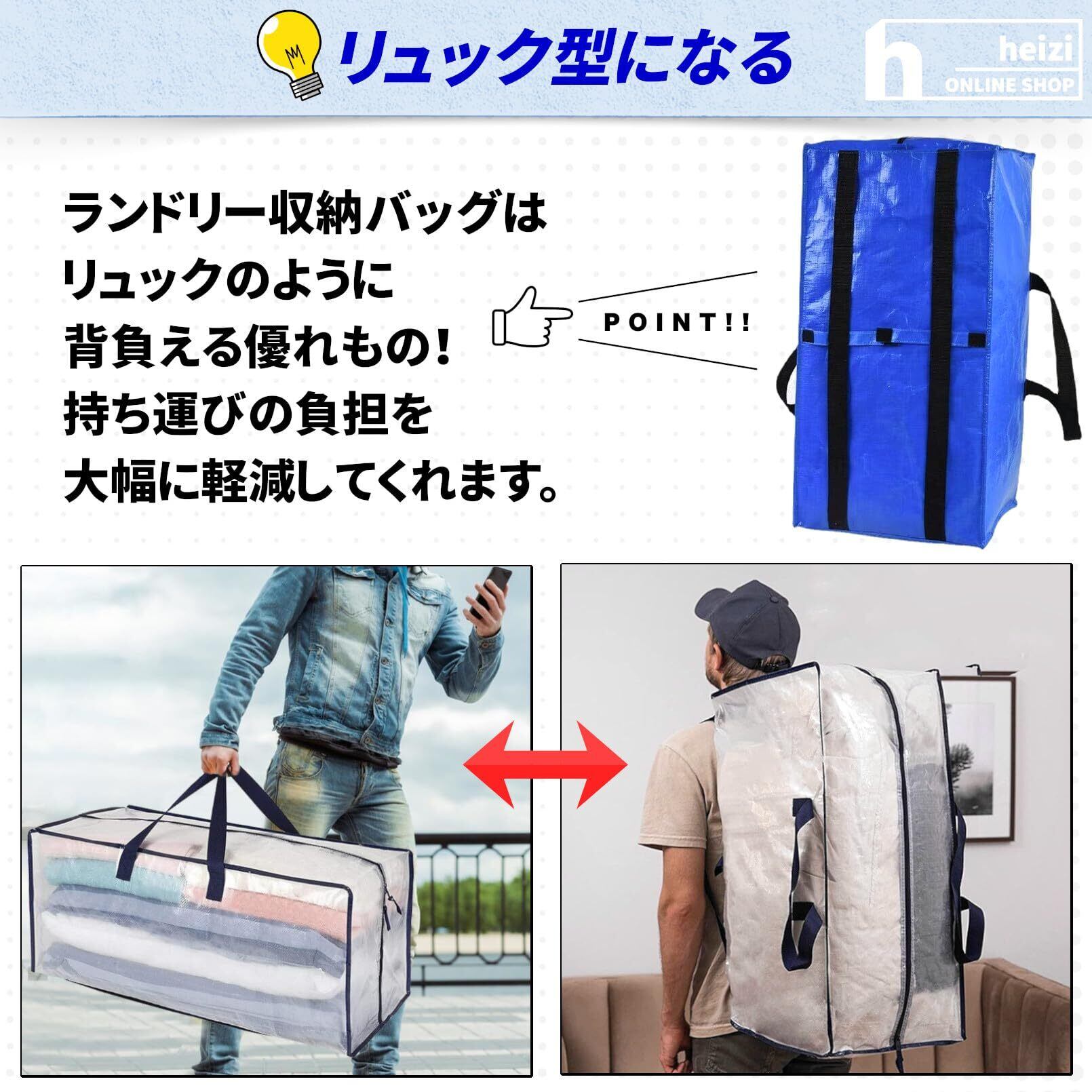 heizi 収納ケース 大容量 背負える 布団収納ケース 透明バッグ リュック ランドリーバッグ 収納バッグ (ブラック)