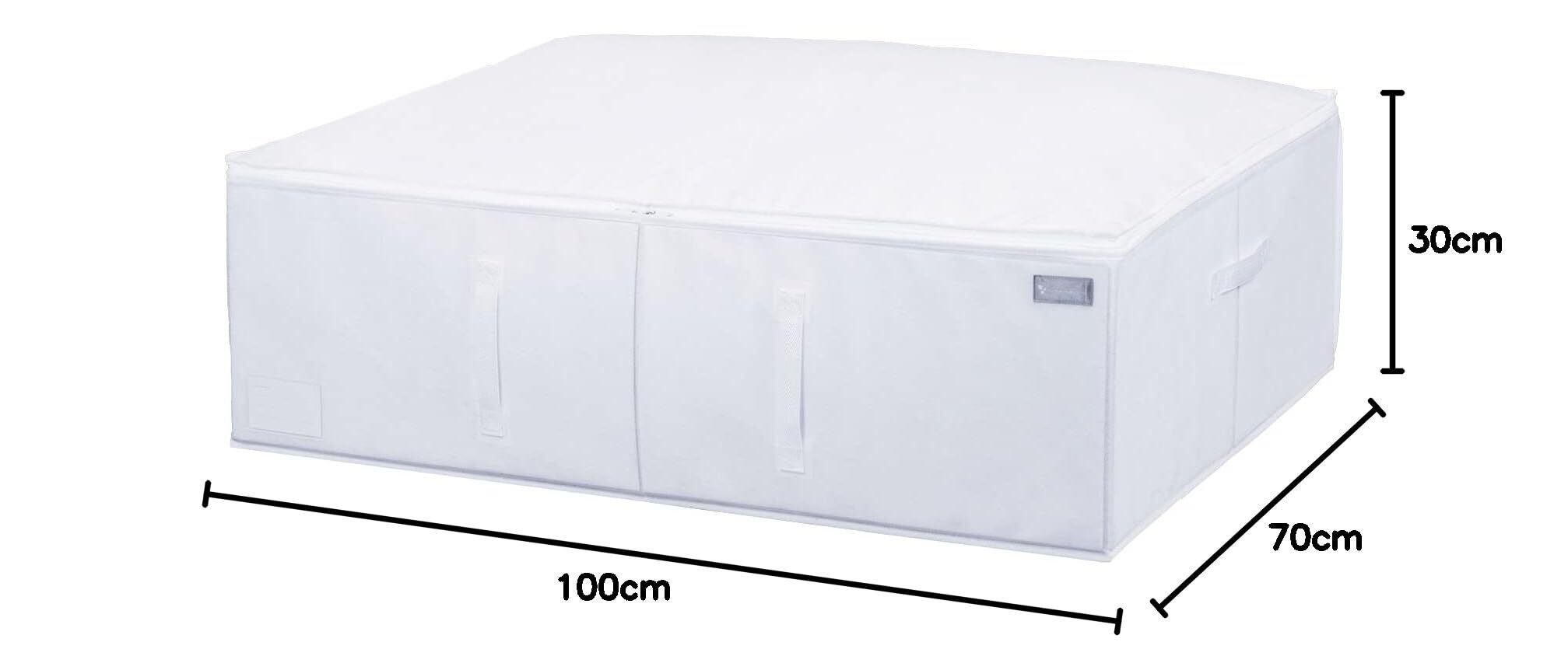 【商品仕様】:サイズ/約幅100×奥行70×高さ30cm、カラー/ホワイト、内容/1個、収納目安/シングルサイズの掛け・敷き布団各1枚、材質/質:ポリプロピレン・厚紙
