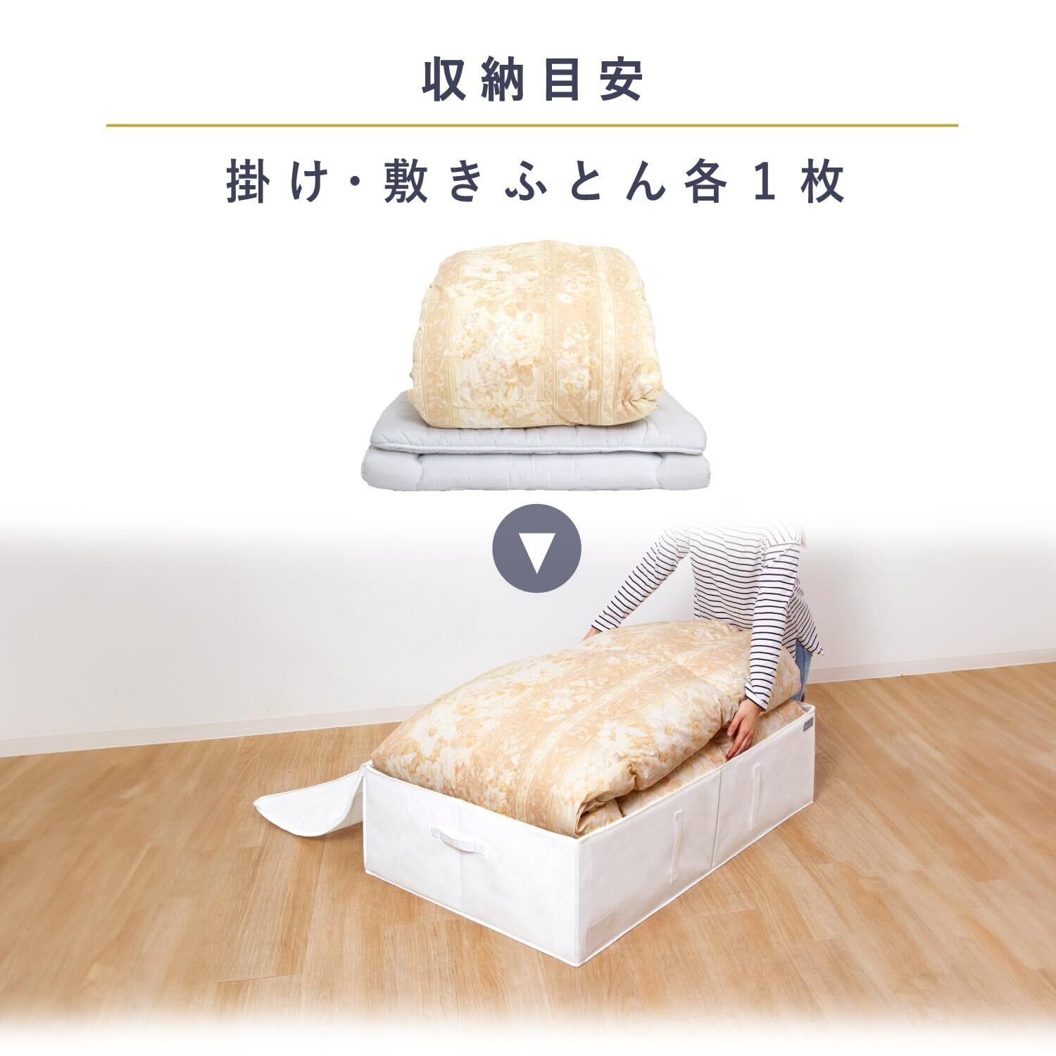 ●通気性の良い不織布製の布団一式収納ケース。来客用の布団などをほこりから守り保管。