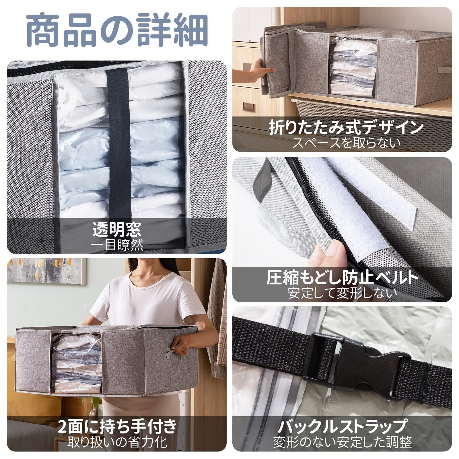 TAILI 布団圧縮袋 大型収納ボックス 衣類 収納ケース 羽毛布団 ふとん 折りたたみ式 一体型 ぬいぐるみ 季節転換 省スペース 繰り返す利用可能 スッキリ収納 掃除機対応可能 カビ ダニ対策 防塵 防湿 引越し 衣替え 整理用品 XLサイズ グレー
