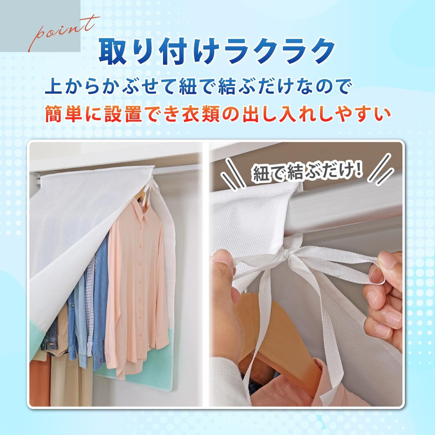 アストロ ハンガーラックカバー ホワイト×ライトグリーン 除湿 衣類カバー 洋服 埃除け 通気性の良い不織布製 乾燥剤 除湿剤 シリカゲルの力で吸湿 においを吸着 防塵 ずり落ち防止固定用ひも付き クローゼット 吊り下げ 614-86