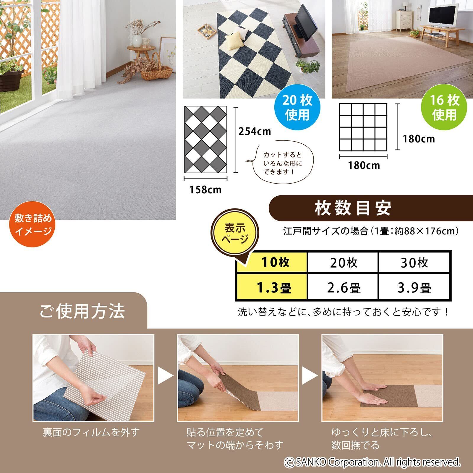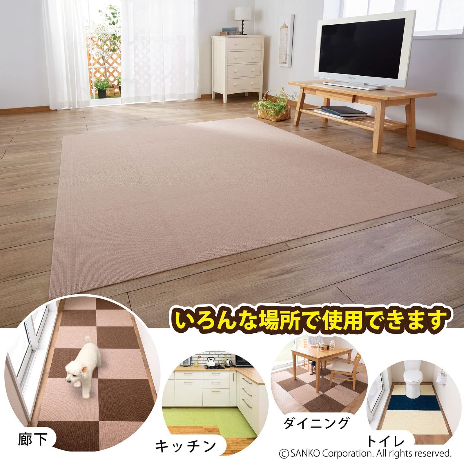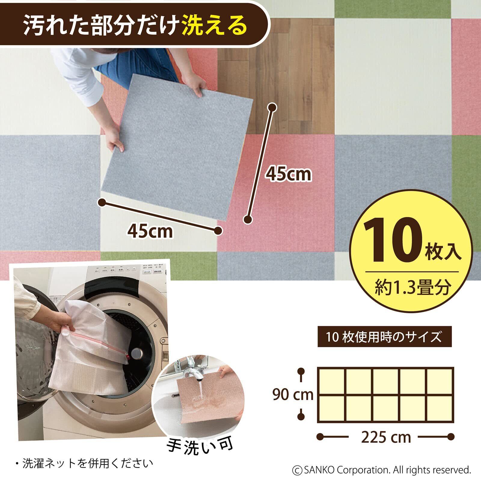 Sanko【日本製 撥水 消臭 洗える】サンコー ずれない ジョイントマット 大判 45×45cm ベージュ 10枚 カーペットタイプ おくだけ吸着 タイルマット KH-14