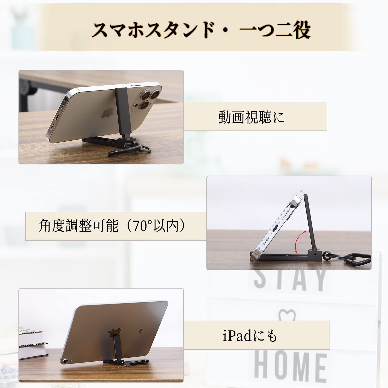 【2WAY・スマフックスplus】スマホスタンド機能付き、動画視聴、読書など楽々に楽しめます。70°以内調節可能。【パッケージ内容】フック*1、カラビナ*1。クリスマスプレゼントおすすめ