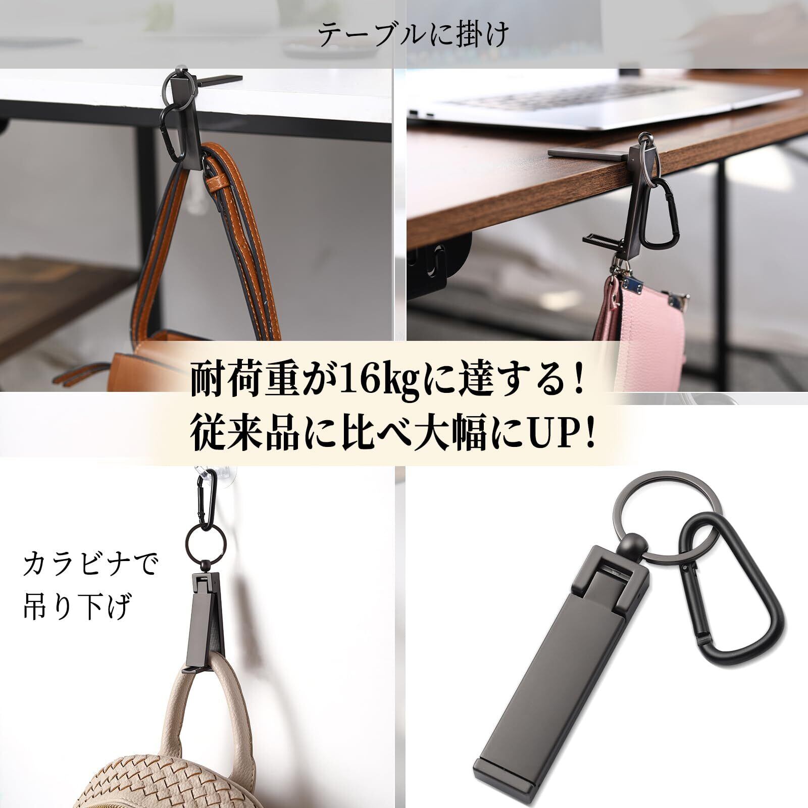 Labato 【2025 新登場!】バッグハンガー カバン掛け フック 耐荷重16㎏ 高強度タイプ テーブルフック バッグフック リュック掛け 万能バッグハンガー デスク スマホスタンド キーホルダー 携帯便利 オフィス 出張 旅行 外出用 ギフト 誕生日プレゼント