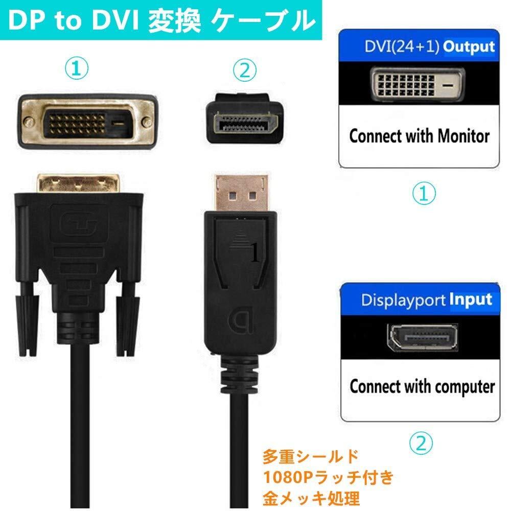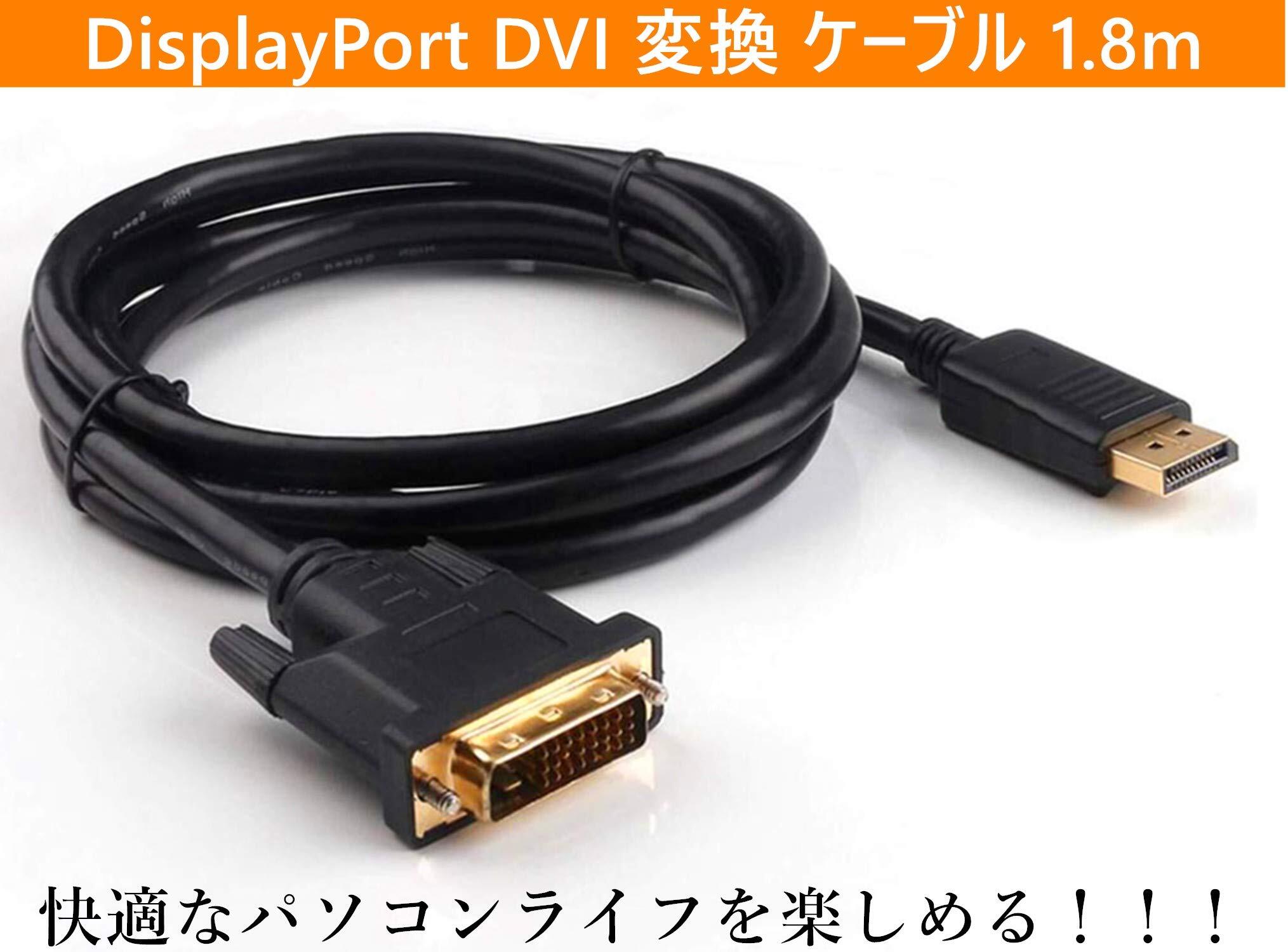 Displayport DVI 変換ケーブル 1.8m DVIケーブル DPケーブル DVIインターフェイスDVI-D 24+1 内臓1080PフルーHD(Full HD)対応 DP(オス)-DVI(オス)DP DVI 1080P