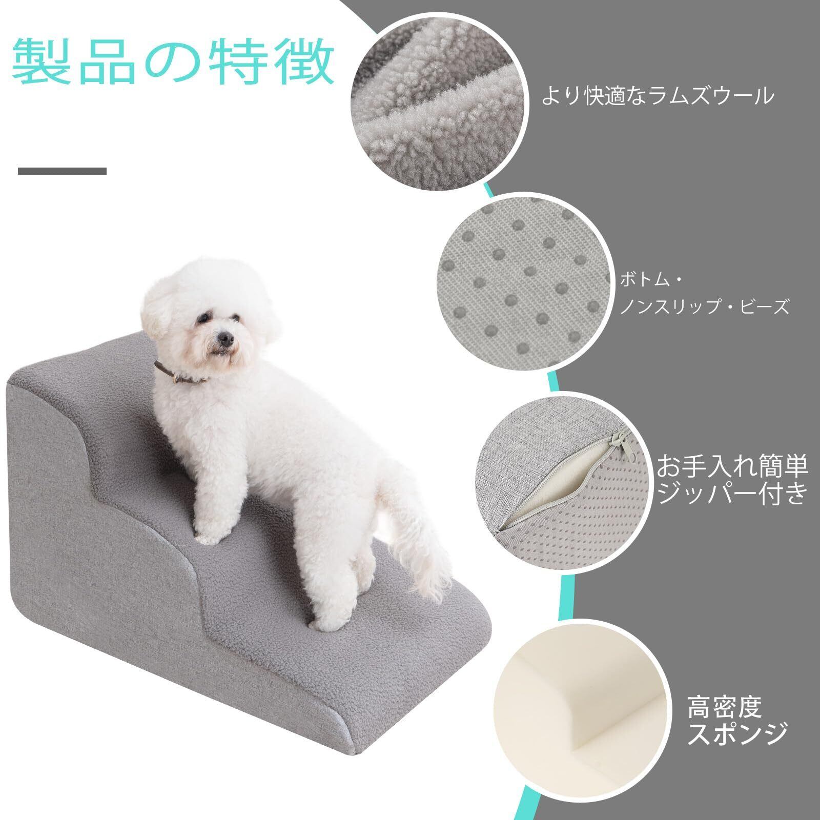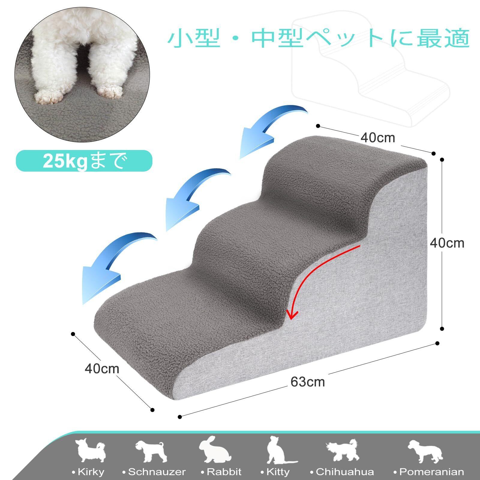 Uross犬用階段小型犬用-犬用ステップ階段スロープベッドカウチ用、犬がベッドに乗るための高密度フォームペットステップ階段、3段猫用ドギーステップスロープ関節痛犬用(グレー)