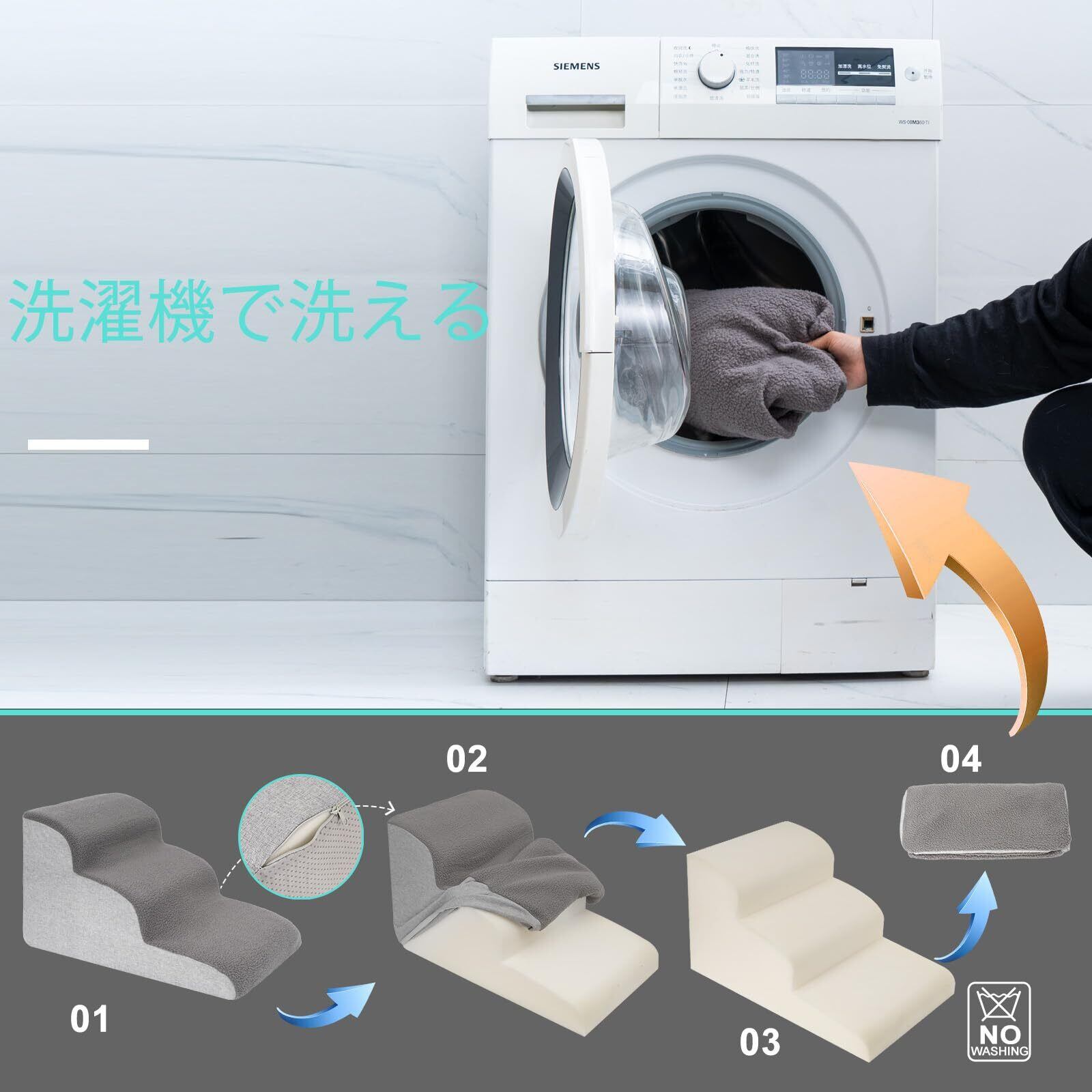 【分解と掃除が簡単】犬用階段の底面にはスムーズなジッパーが付いており、カバーを取り外して洗濯機で洗うことができます。定期的に掃除して、ペットに居心地の良い階段を与えることができます。