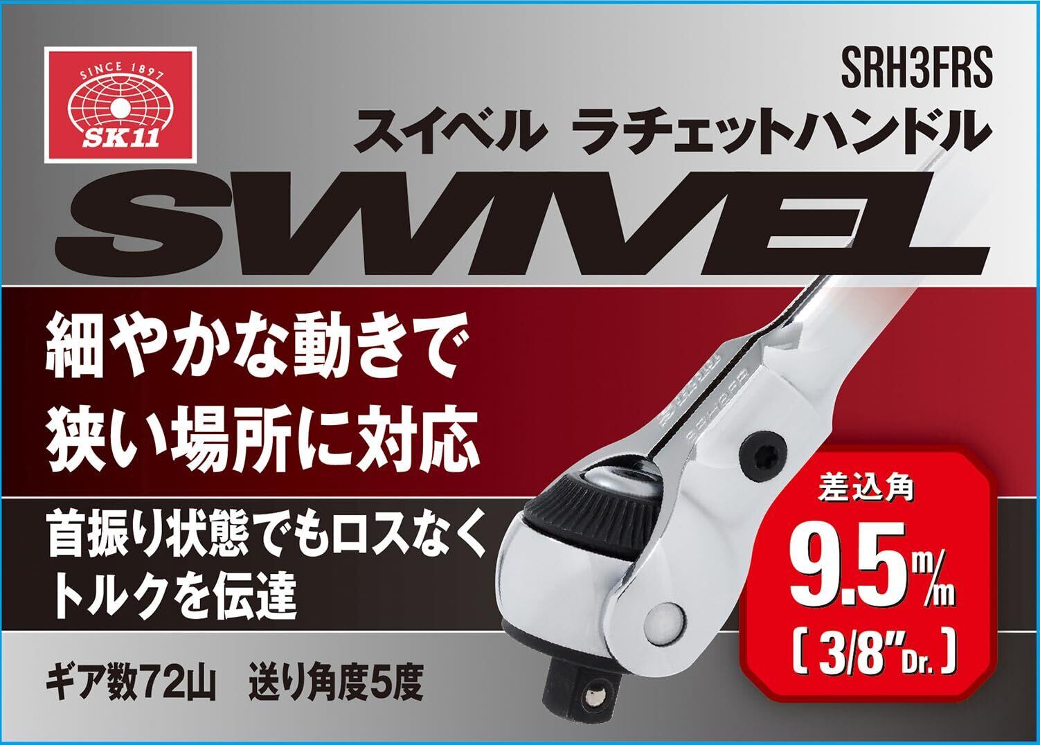 SK11(エスケー11) スイベルラチェットハンドル 差込角 9.5mm 3/8インチ SRH3FRS 72山ギア 全長150mm
