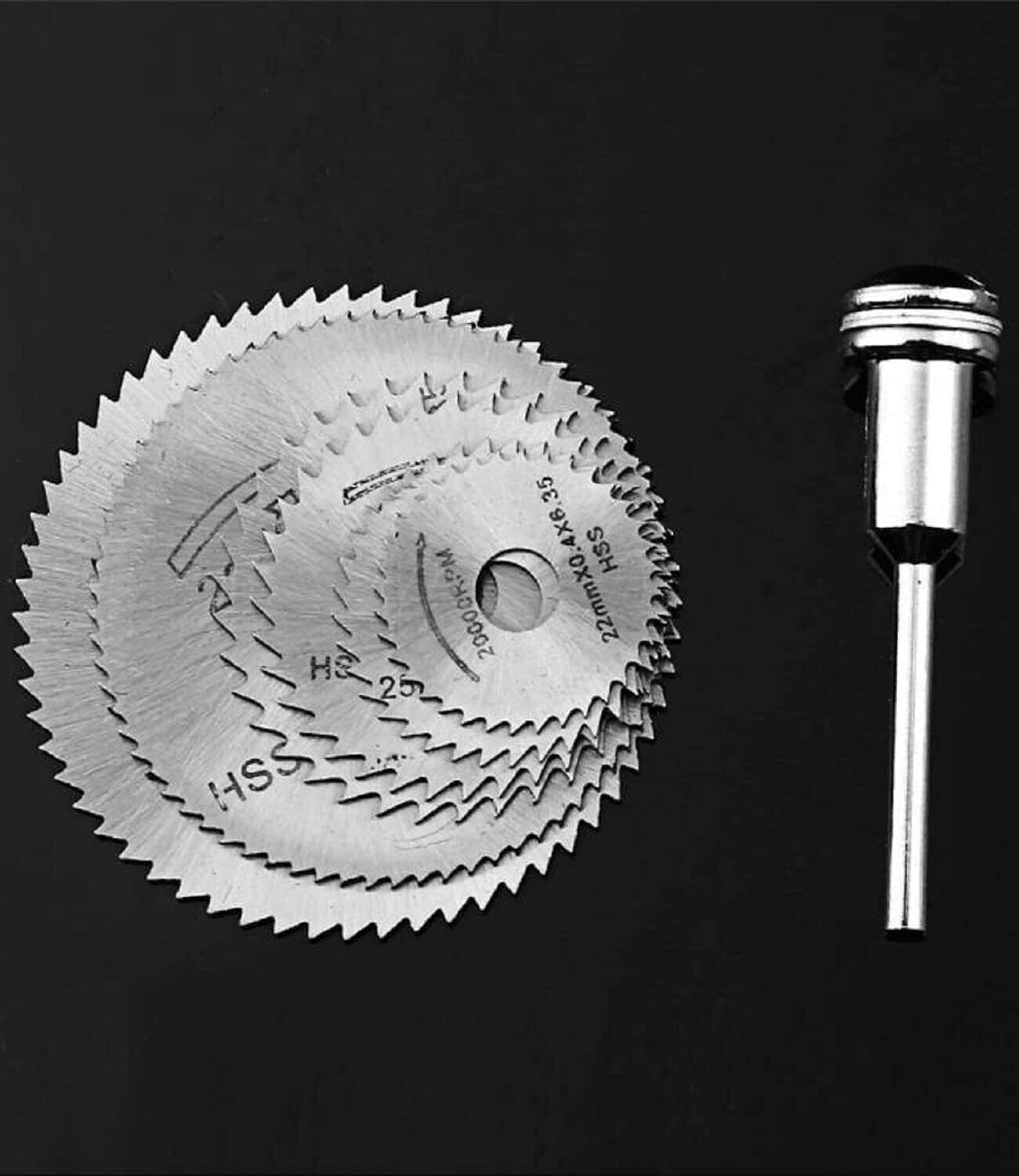 HYCDIYTS スリッターブレード リューター カッター 丸鋸刃7点セット 超硬 チップソー 切削ディスク ミニルーター リューター ビット ダイヤモンドソーブレード 切削工具用(のこ刃 6枚+シャフト付)
