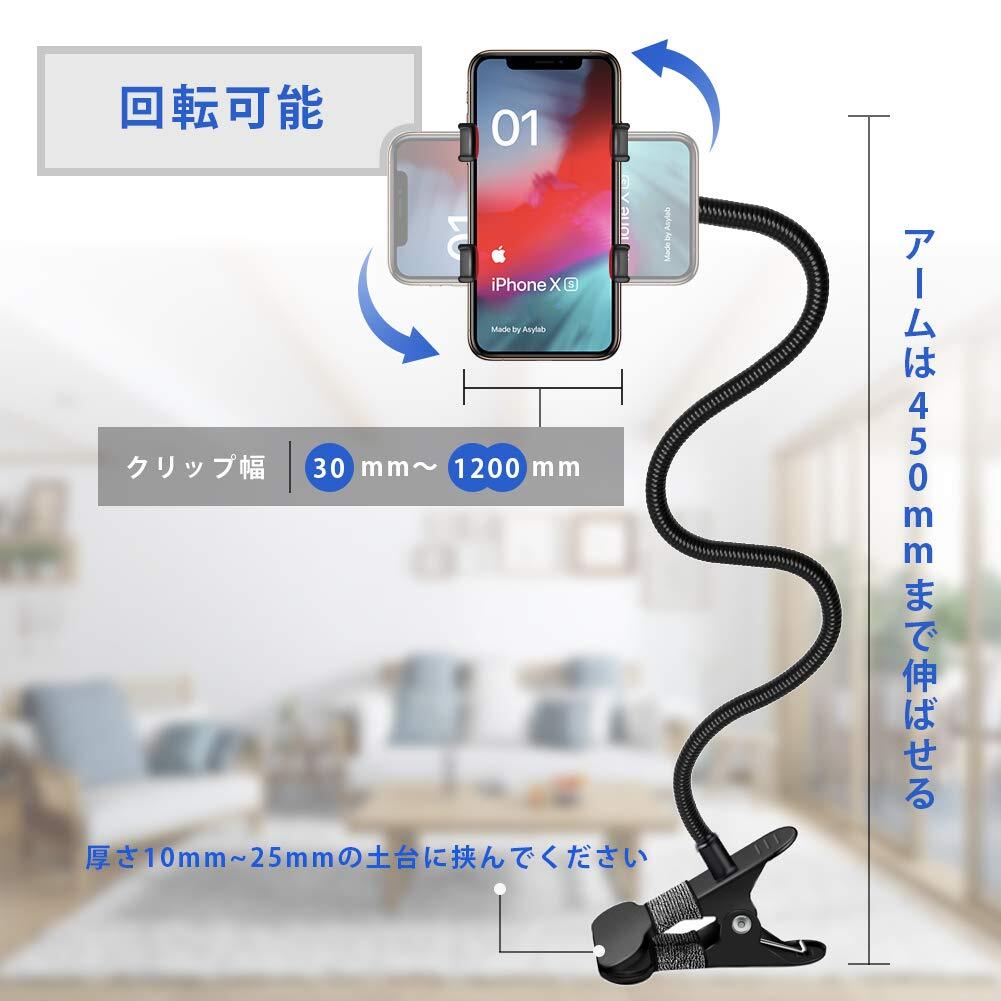 TOPOOMY スマホホルダークリップ式 フレキシブルアーム 充電ホルダー シリコーン、ゴム、アルミニウム 360度回転 自由調節 角度調整可能 TOPOOMY ブラック