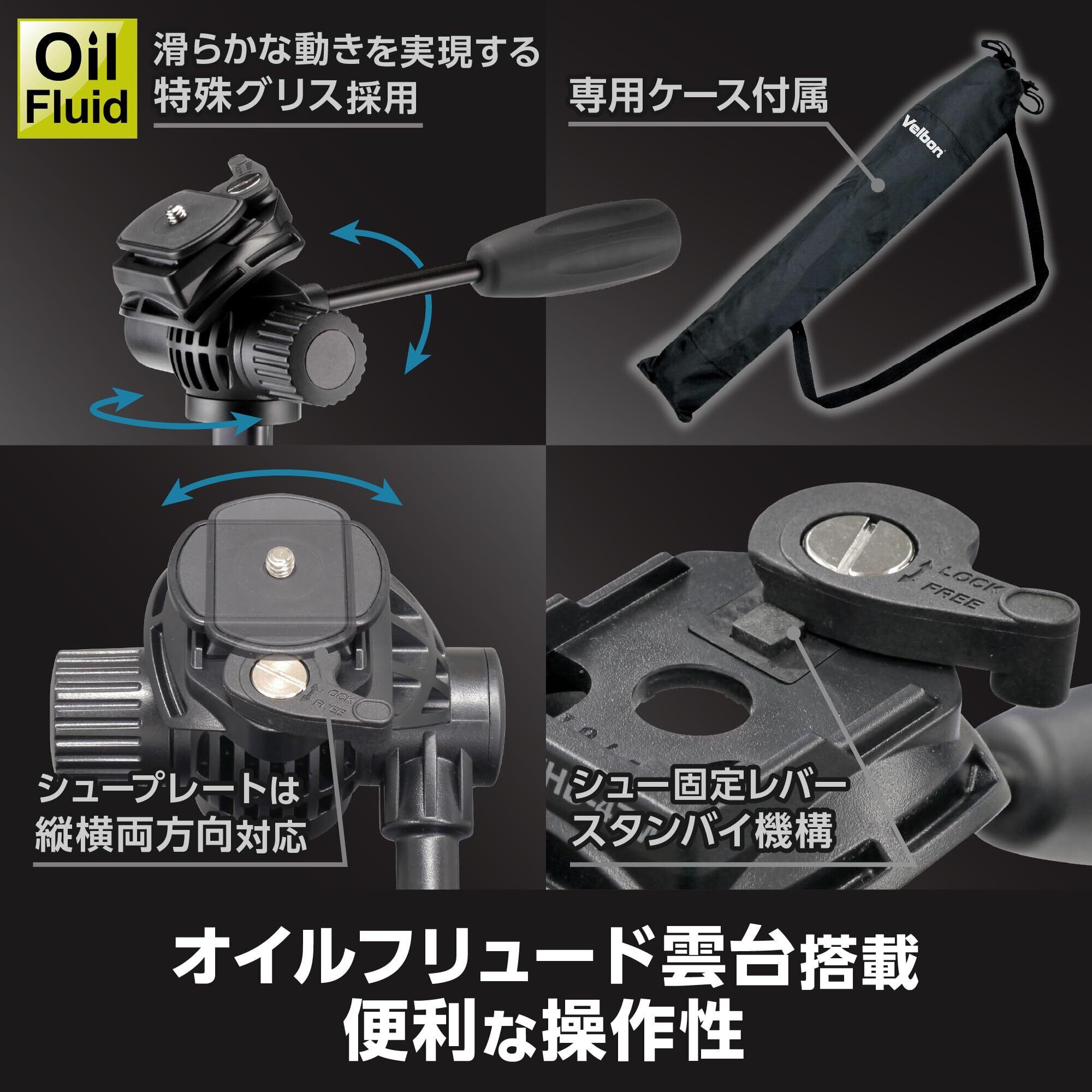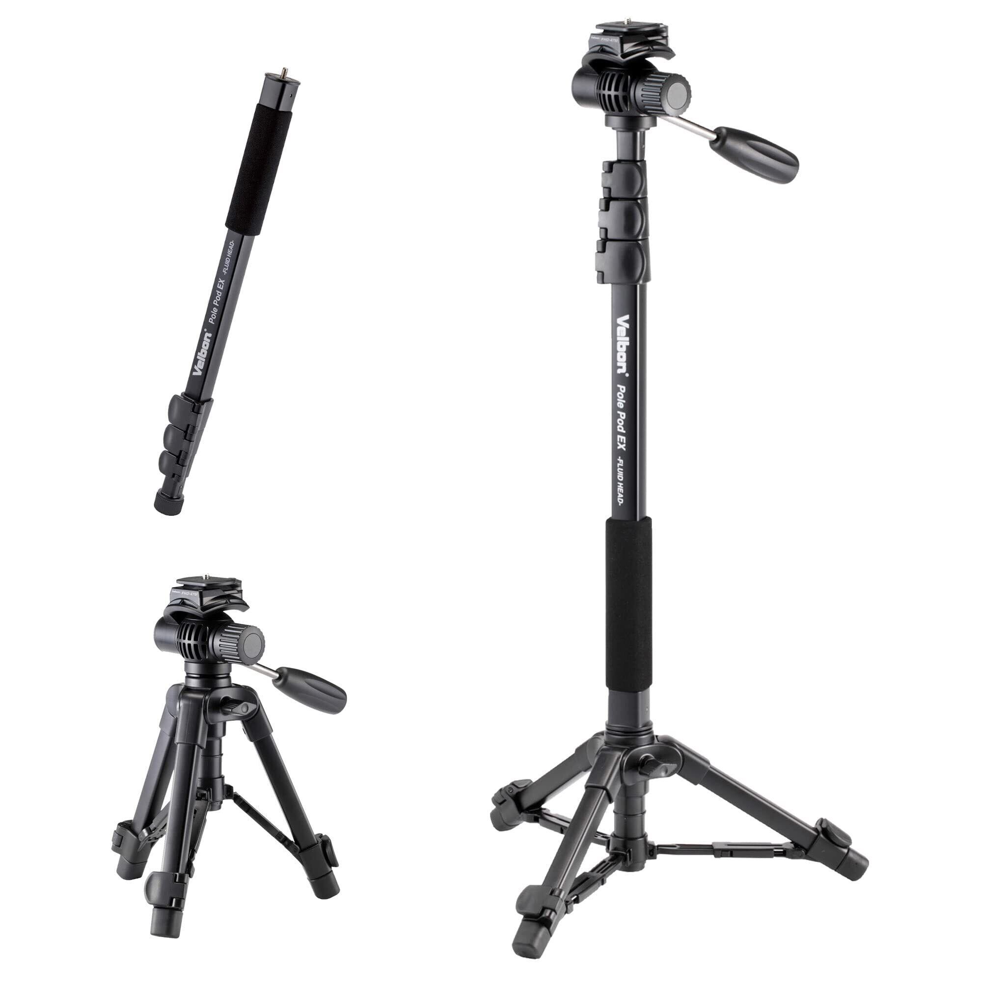 ベルボン 【Amazon.co.jp限定】Velbon スタンド型一脚 ポールポッド EX フリュードヘッド AZ AMZPPODEX-FLHD 4段 レバーロック 脚径23mm フリュード雲台 クイックシュー対応 アルミ脚 卓上三脚へ組み換え可能