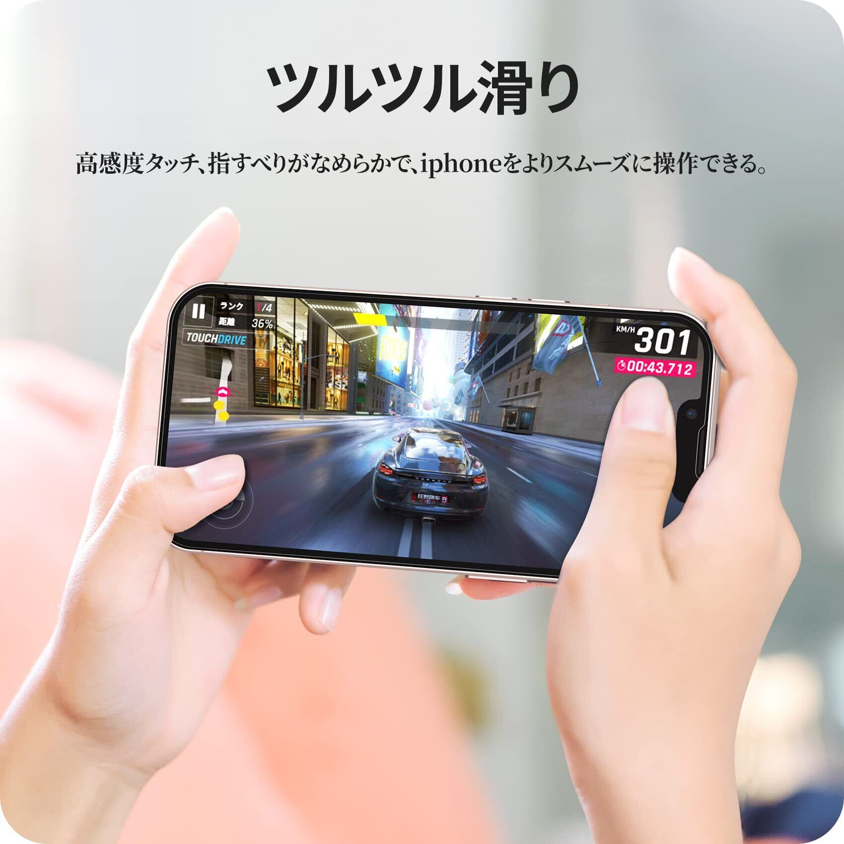 【9H硬度・飛散防止】 9H硬度ガラスを採用し、ハードコーティング技術により外部からの衝撃を吸収し、アイフォン13ミニスクリーンへのダメージを抑えました。飛散防止加工により万が一割れた場合でも、ガラス破片が飛び散りにくくなっております。
