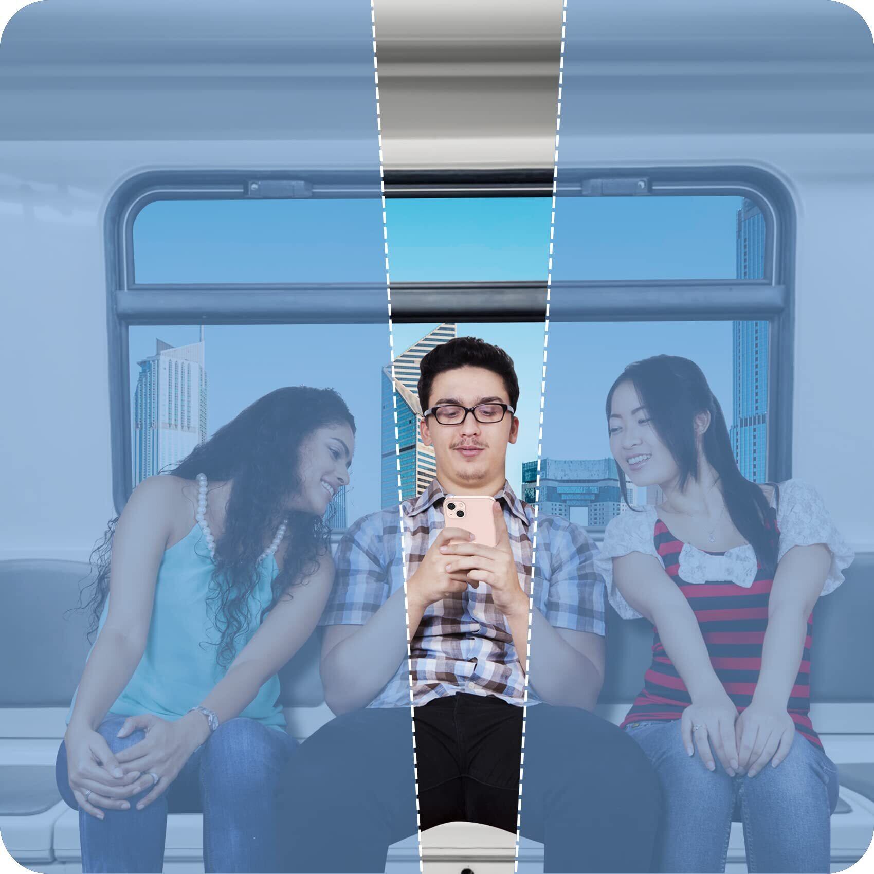 【覗き見防止仕様】覗き見防止技術により、左右の視野からの視線を防ぎ、画面のプライバシーを守ります。例えば、電車やバスの中でメッセージを見ていたら、隣の人に覗かれていたという心配がなく、LINEやメール操作の際も安心です。。また、本製品は斜めから見るとブラインドルーバーにより画面が真っ黒になりますが、真正面から見ると高透過率ではっきり見ることが出来ます。