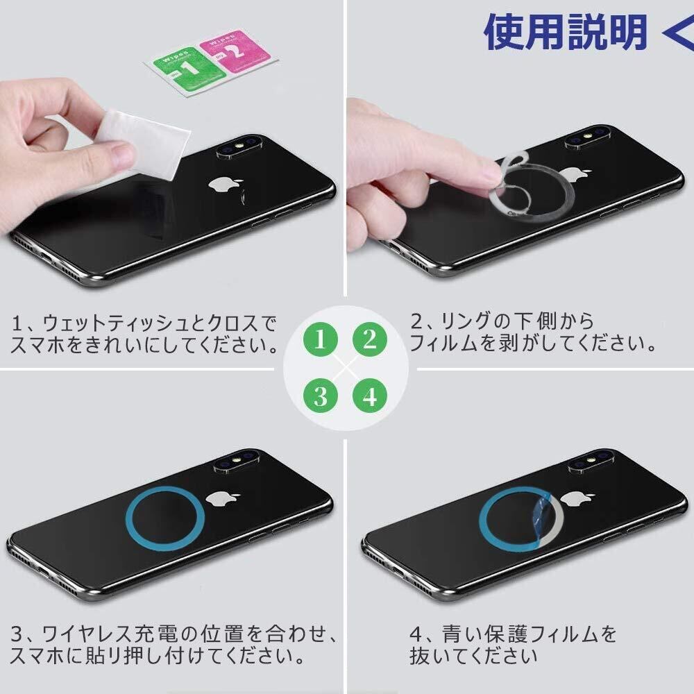 【パッケージ内容】2 x メタルリング 、2 x 貼り付け用の道具。注意:本商品は金属製のメタルリングであり、商品自身には磁気がない。この製品は一回しか貼り付けることができません。一度はがしてしまうと、製品の形状が変形したり、粘着性が低下したりすることがあります