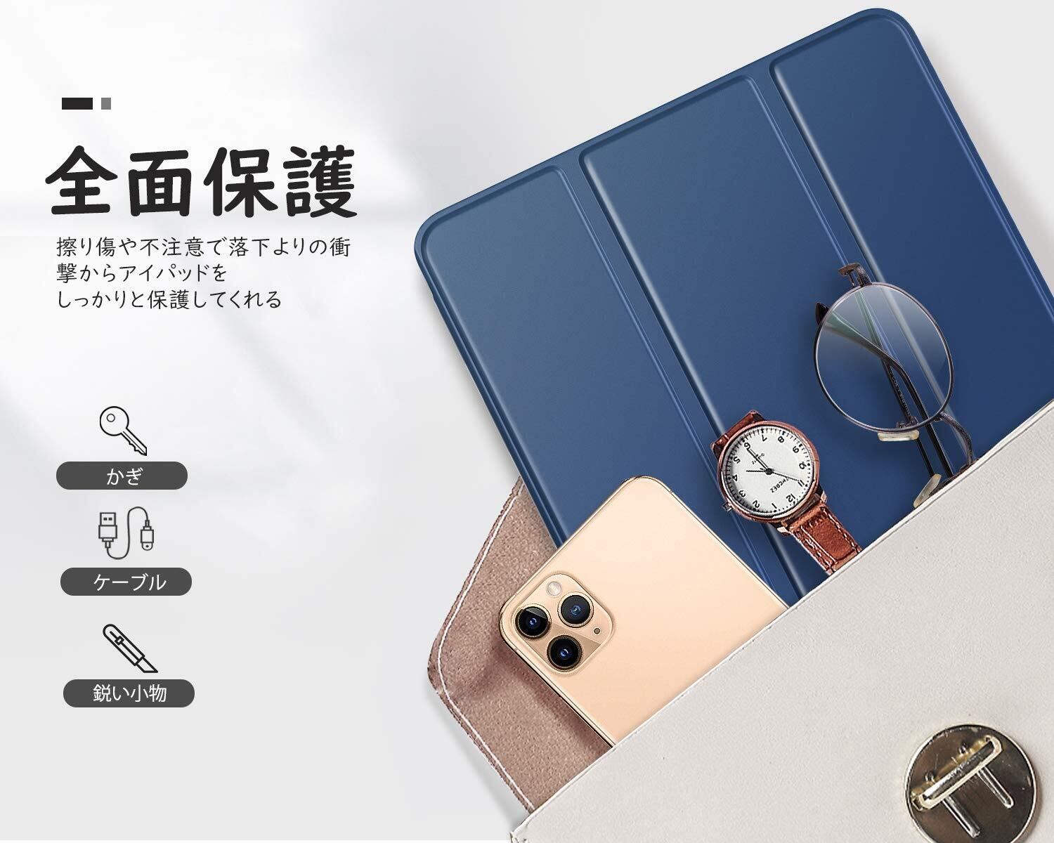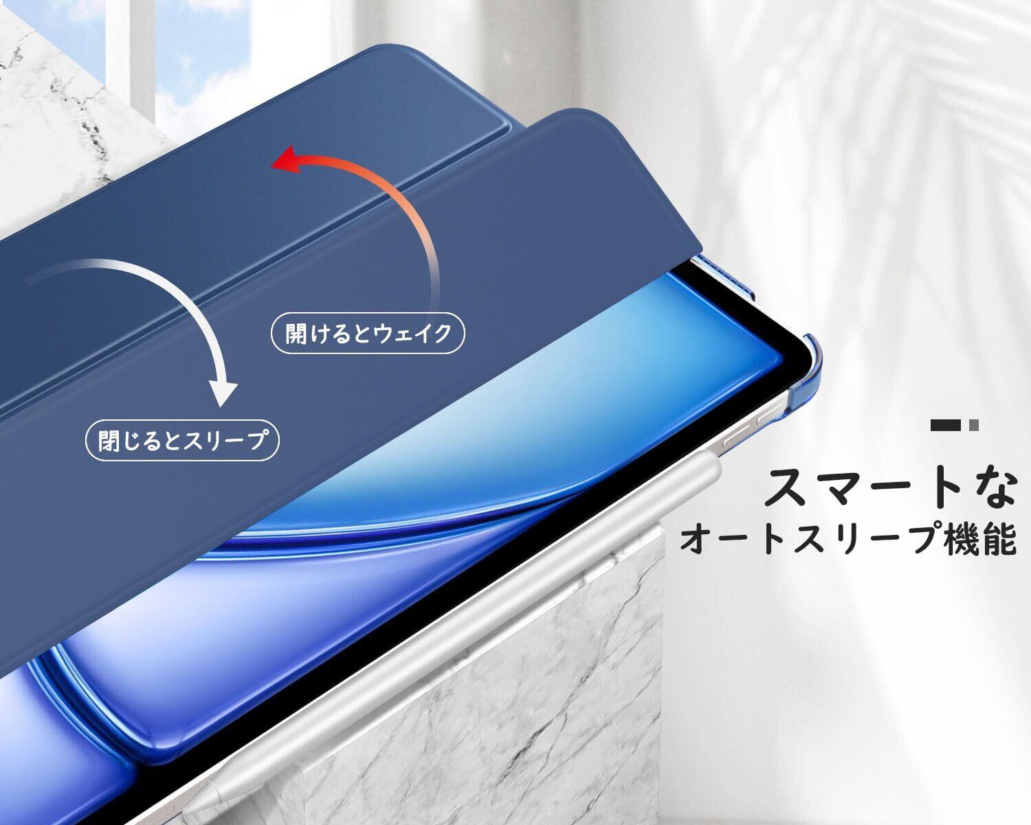 MoKo iPad Air 11インチ ケース(2025/2024)、iPad Air5/4 10.9インチ ケース iPad Air(M3/M2) 11インチ iPad Air第5/4世代 10.9 カバー 半透明 オートスリープ ApplePencilPro/第2世代ペアリング&充電対応 三折りスタンド PUレザー 裏地マイクロファイバー スマートケース ネイビーブルー