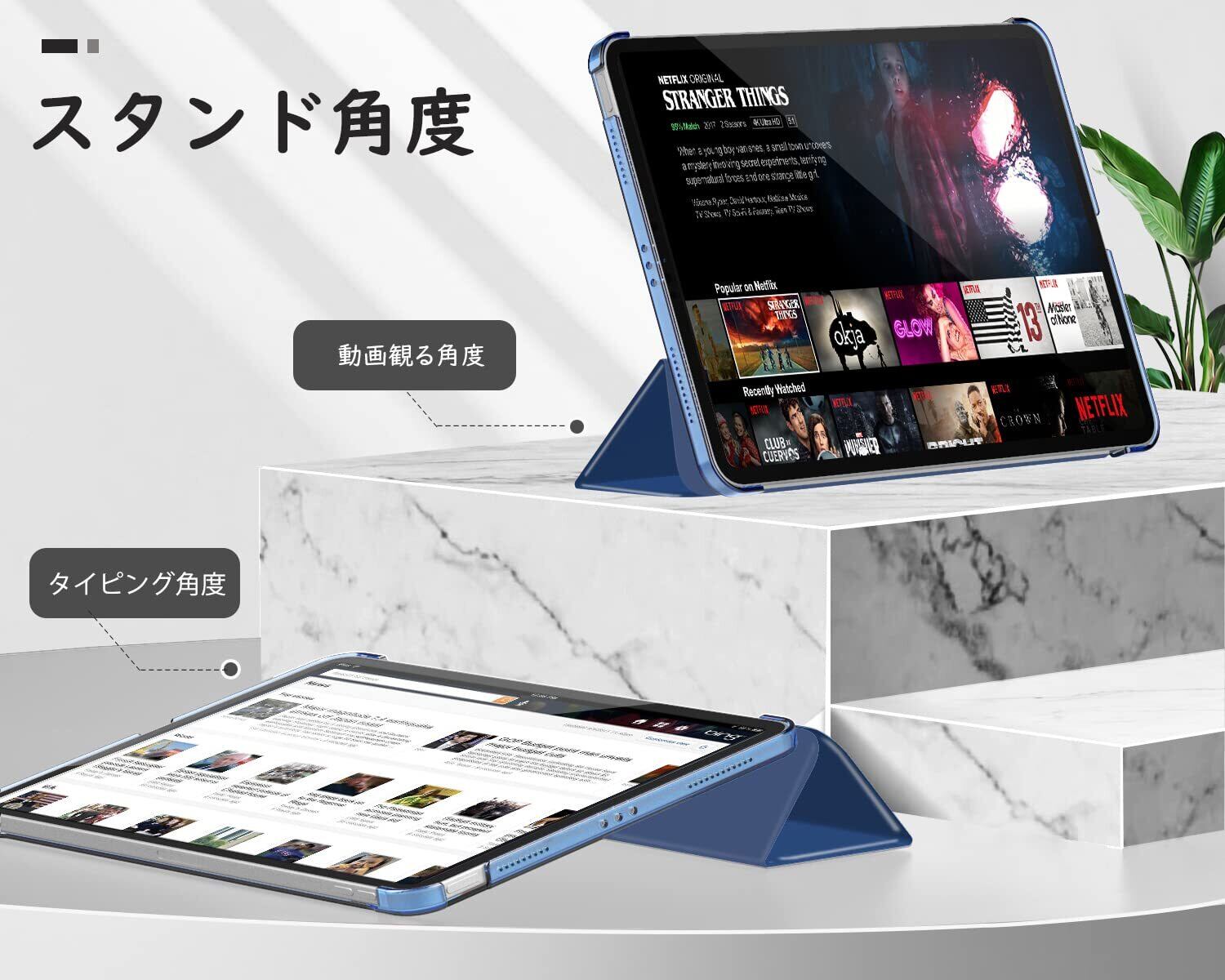 「便利なスタンド仕様」3つ折りのスタンド仕様より、タイピング角度もお好きな角度に変えて、両手解放で動画鑑賞を楽々に楽しめ、仕事やゲームなどもっと快適に進められます。