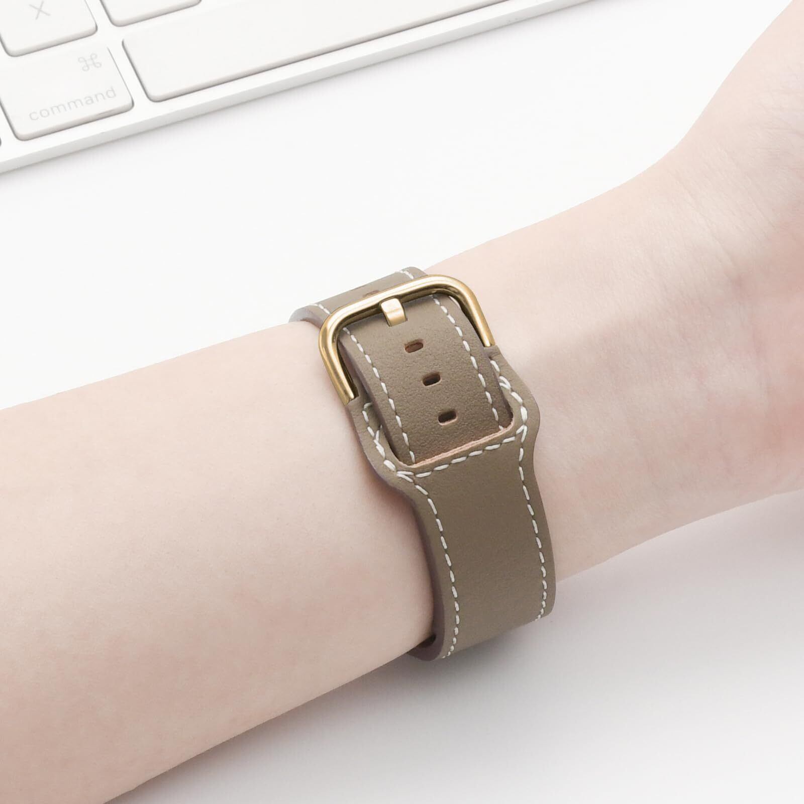 材質は本革製、絶妙でファッショナブルなストラップは、厳選されたトップレザーと高品質のステンレススチールバックルで構成されています。コンパチブルApple Watch 快適で耐久性があります。技量も非常に均一で、簡単にバラバラにならないタイトなステッチを使用しています。