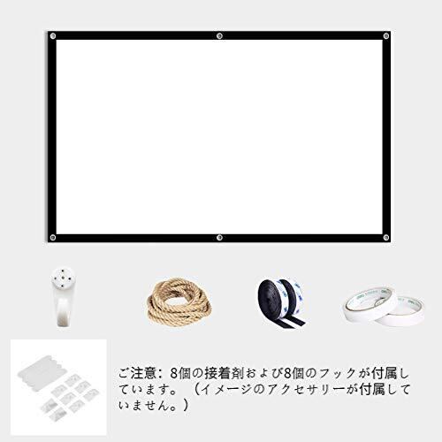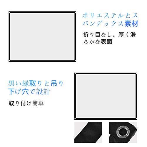 【取り付け簡単】この投影用スクリーンは黒い縁取りと吊り下げ穴で設計されており、通常は壁に掛けるか、フレームに固定します。8個の接着剤および8個のフックが付属しています。 プロジェクタースクリーンはフック、テープで壁に貼ったり、庭園に取り付けたりすることができます。