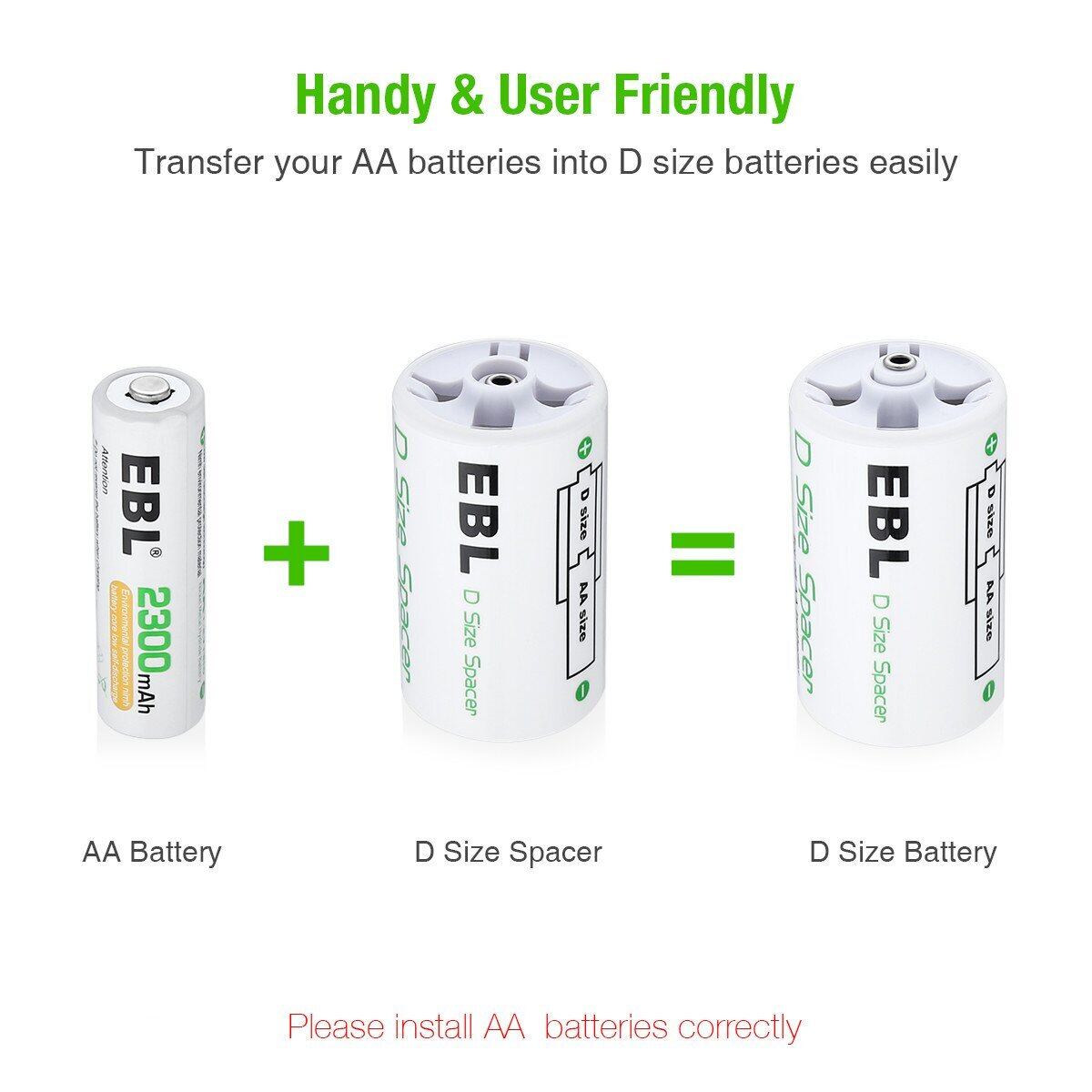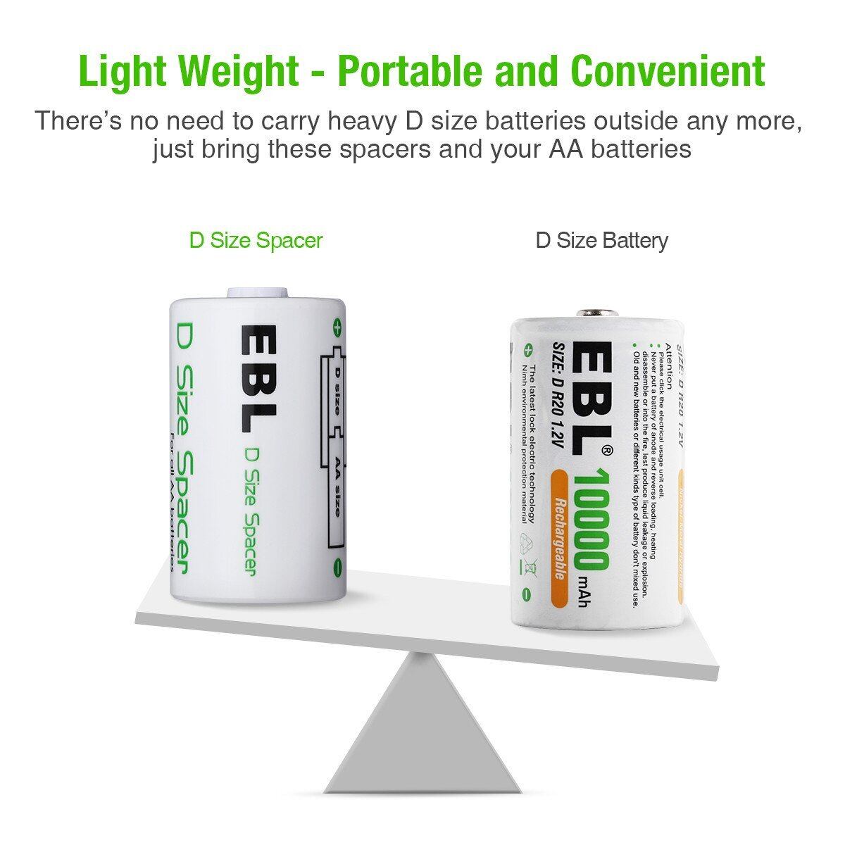 EBL 単一 スペーサー 単3→単1変換アダプター 電池スペーサー 変換スペーサー (単1タイプ) 単3形充電池/アルカリ電池用 単三 単一 スペーサー サイズ変換スペーサー