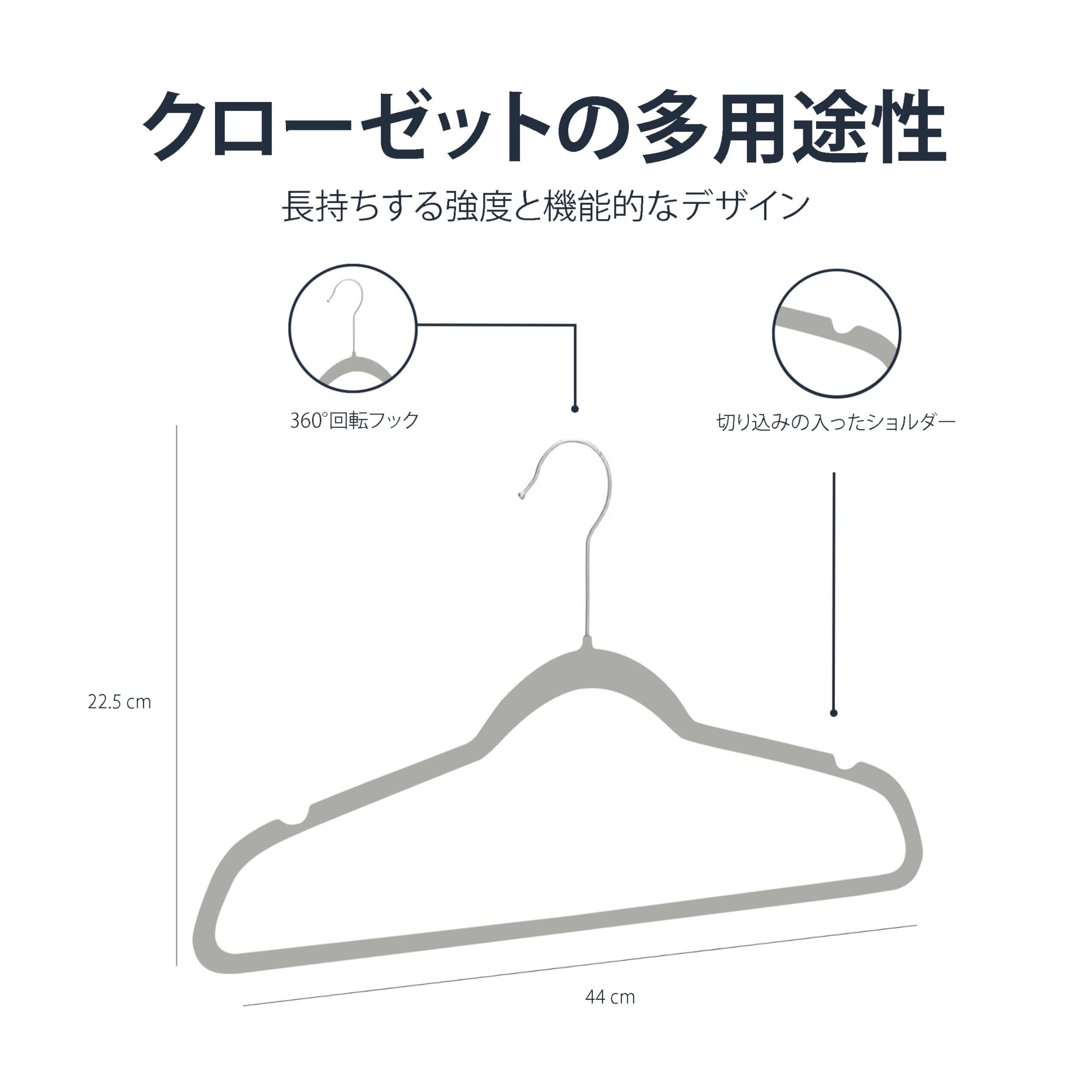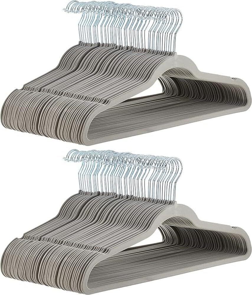 Amazonベーシック ハンガー 100本組 滑らない かたくずれ防止 ベルベット製 グレー