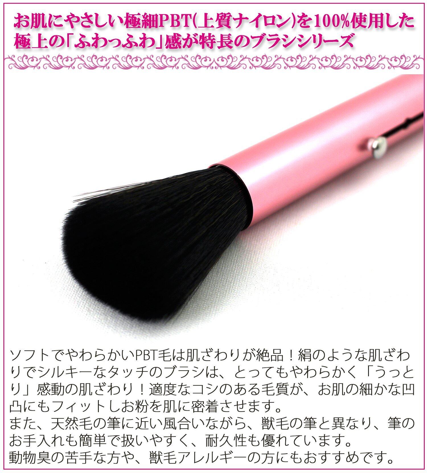 ●ソフトでやわらかいPBT毛は肌ざわりが絶品! 絹のような肌ざわりでシルキーなタッチのブラシは、とってもやわらかく「うっとり」感動の肌ざわり