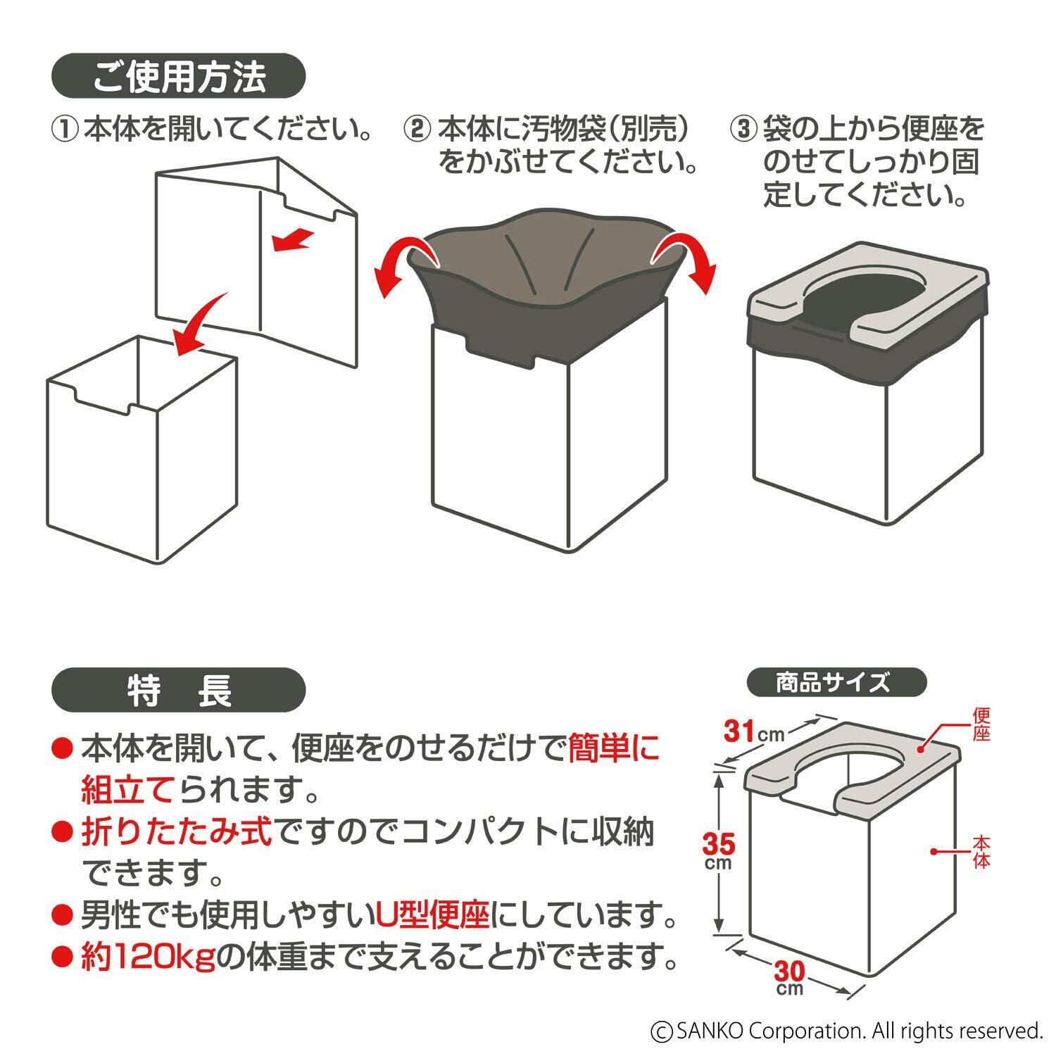 サンコー 非常用 災害用 簡易トイレ 旅行 キャンプ 備蓄 携帯 防災 軽量 日本製 本体 耐荷重120kg R-58