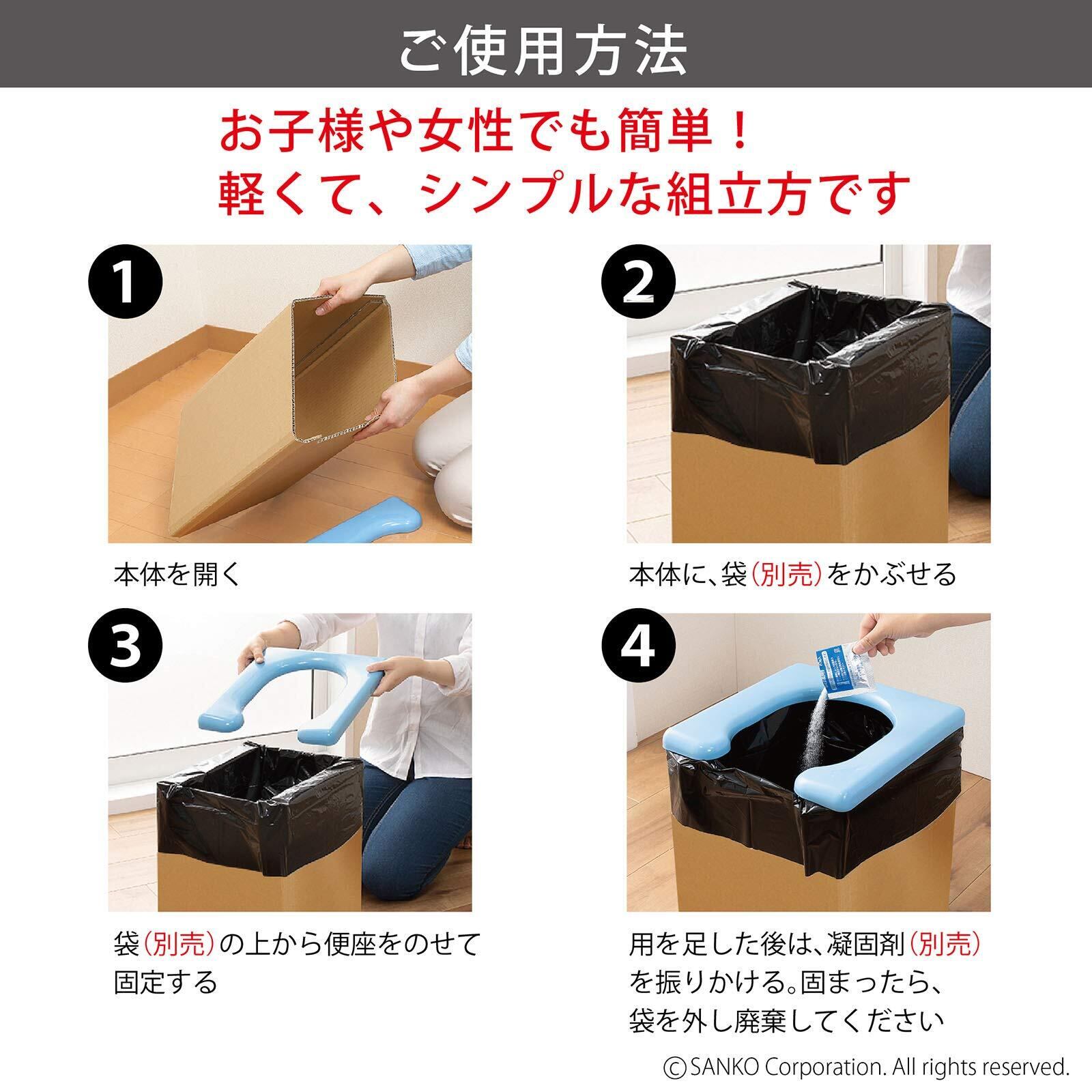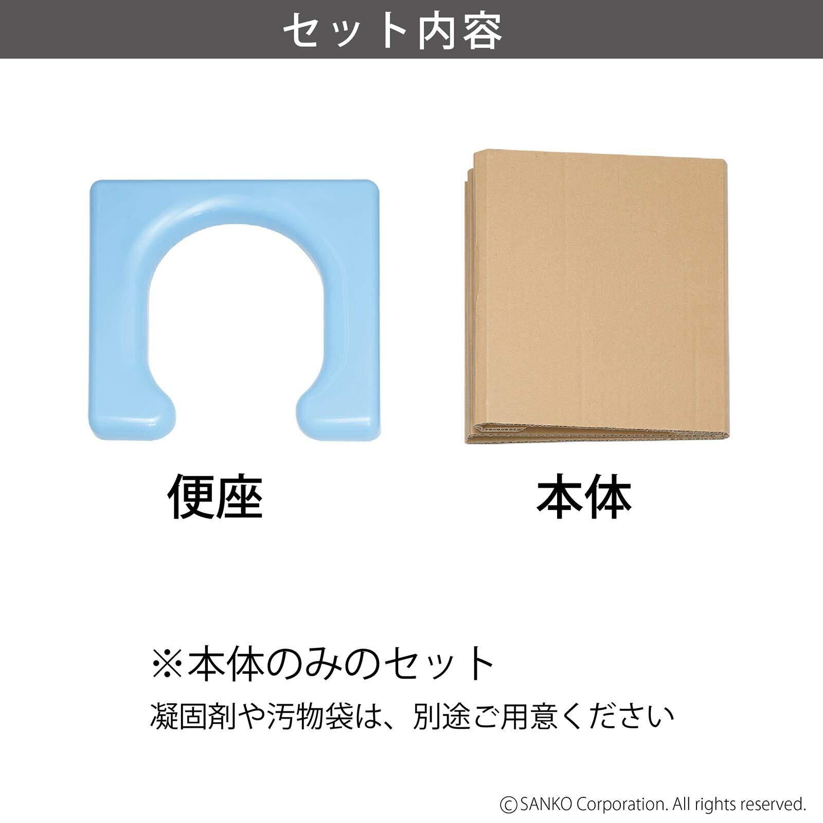 本品は、本体と便座のみのセットですので、ご使用の際は汚物袋や凝固剤等を別途ご用意ください