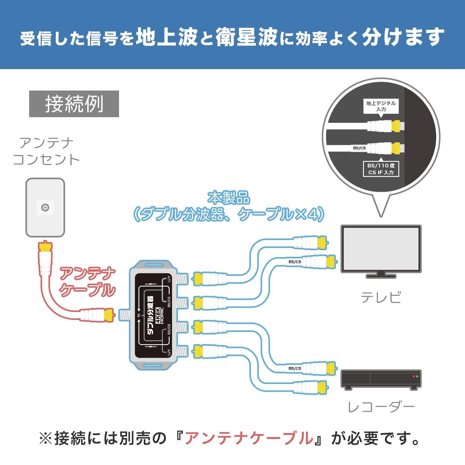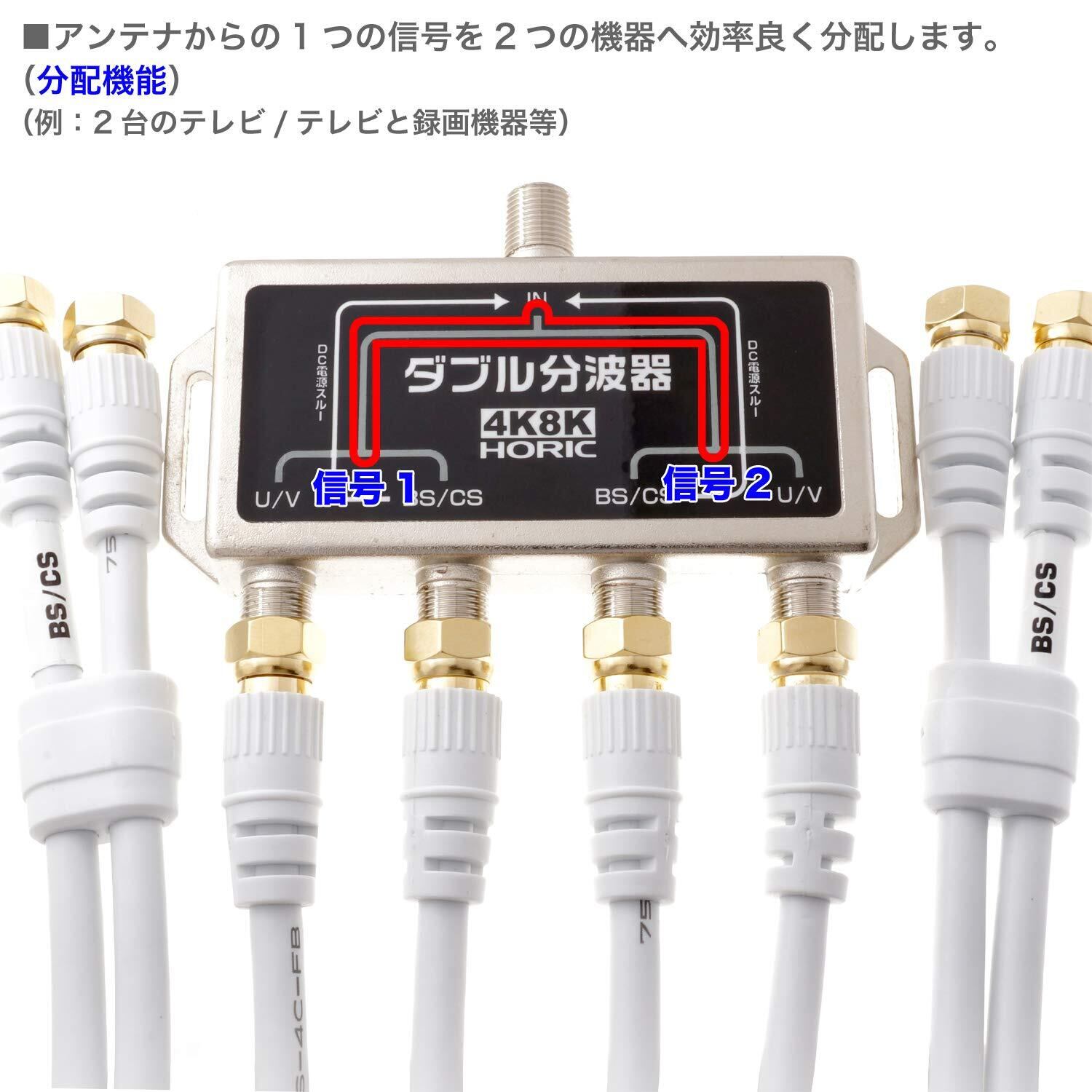 ホーリック アンテナダブル分波器 【4K8K放送(3224MHz)/BS/CS/地デジ/CATV 対応】 ケーブル4本付属 50cm HAT-WSP005
