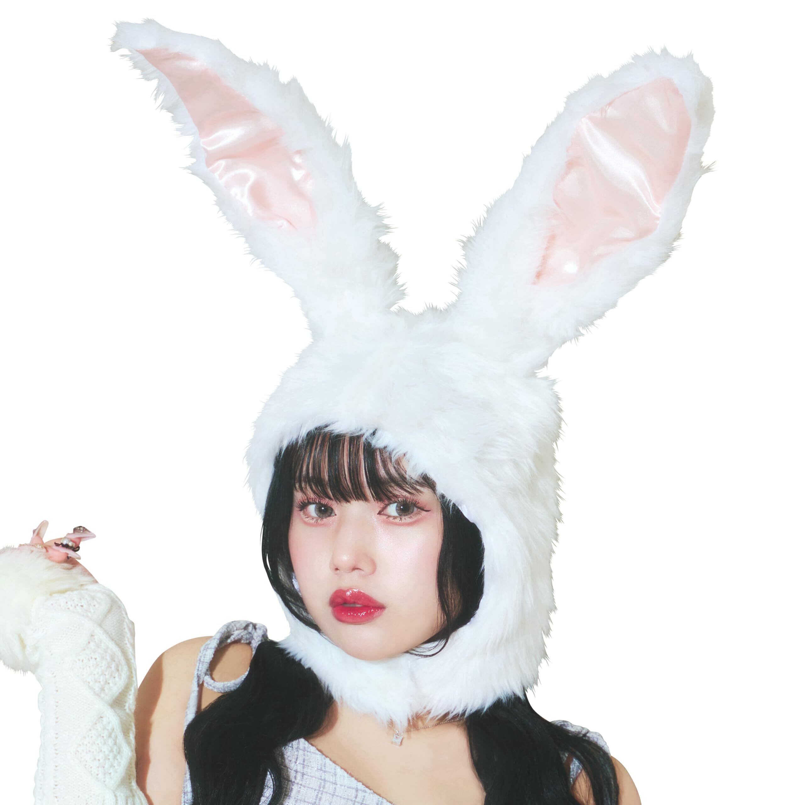 もふもふファーがキュートなウサギのかぶりもの。