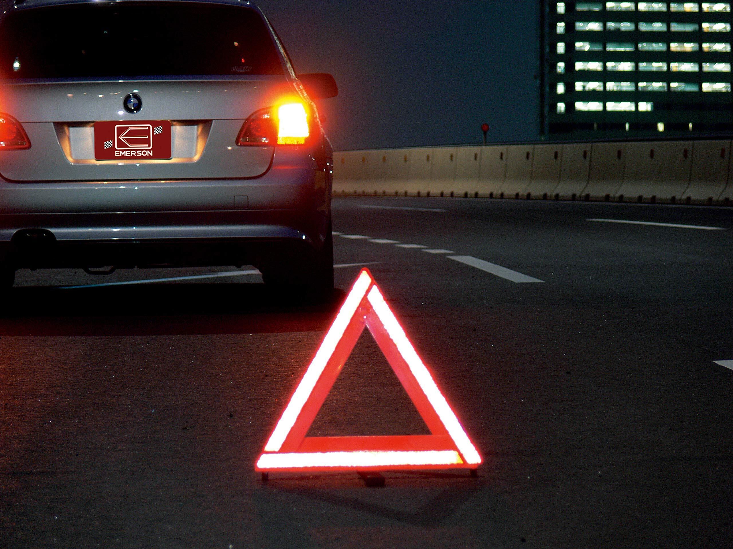 エマーソン(Emerson) 車載用三角停止表示板 国家公安委員会認定品(TSマーク) 後続車が見やすい昼夜間兼用型 一般道や高速道路での停車中の事故防止・ 収納に便利なプラスチックケース付 EM-351