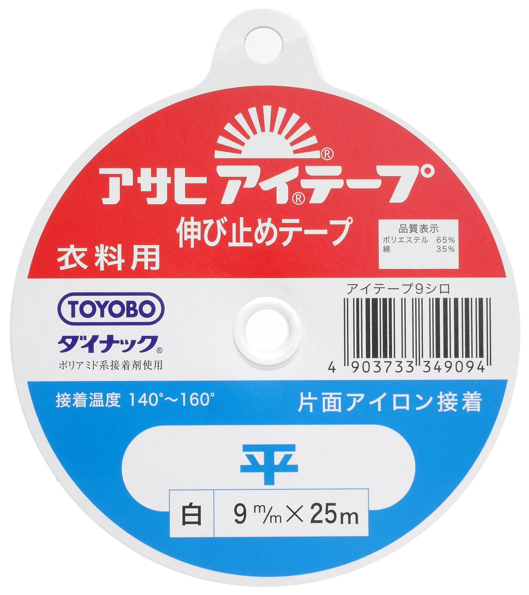 アサヒ アイテープ 伸び止めテープ 衣料用 片面アイロン接着 平 幅9mm×25m巻 白