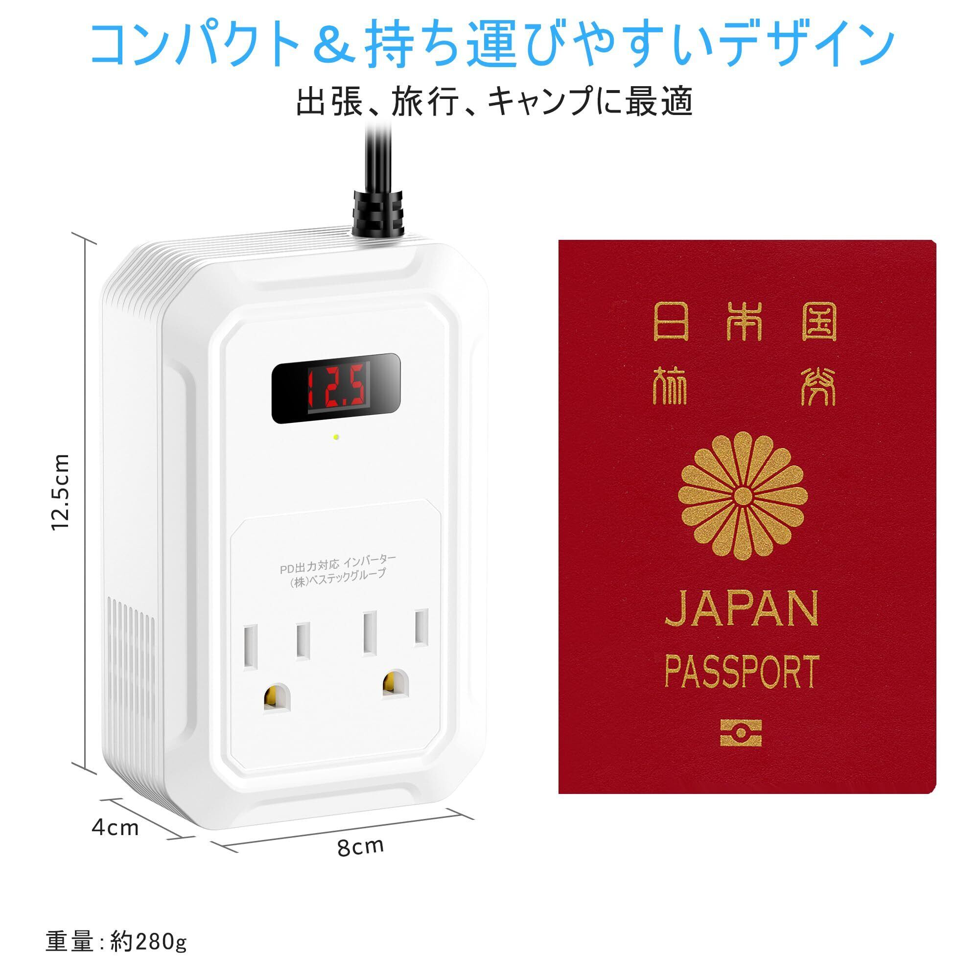 「日本法人直営」 BESTEKの自社工場で独自開発した200W修正正弦波インバーターです。自動車のDC12V電源を家庭用AC100Vに変換可能で、車でノートパソコン、掃除機、車載冷蔵庫、除湿機、空気ポンプ、こたつ、電気毛布など幅広い機器に対応しています。※合計使用効率が150Wを超える機器を使用する場合、別途のバッテリー接続ケーブルをご使用ください
