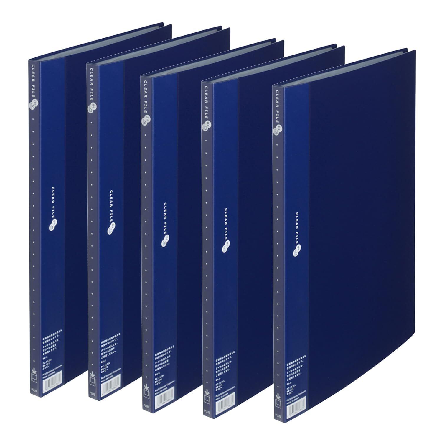 プラス クリアファイル スーパーエコノミー B4縦 20ポケット ネイビー 5冊セット