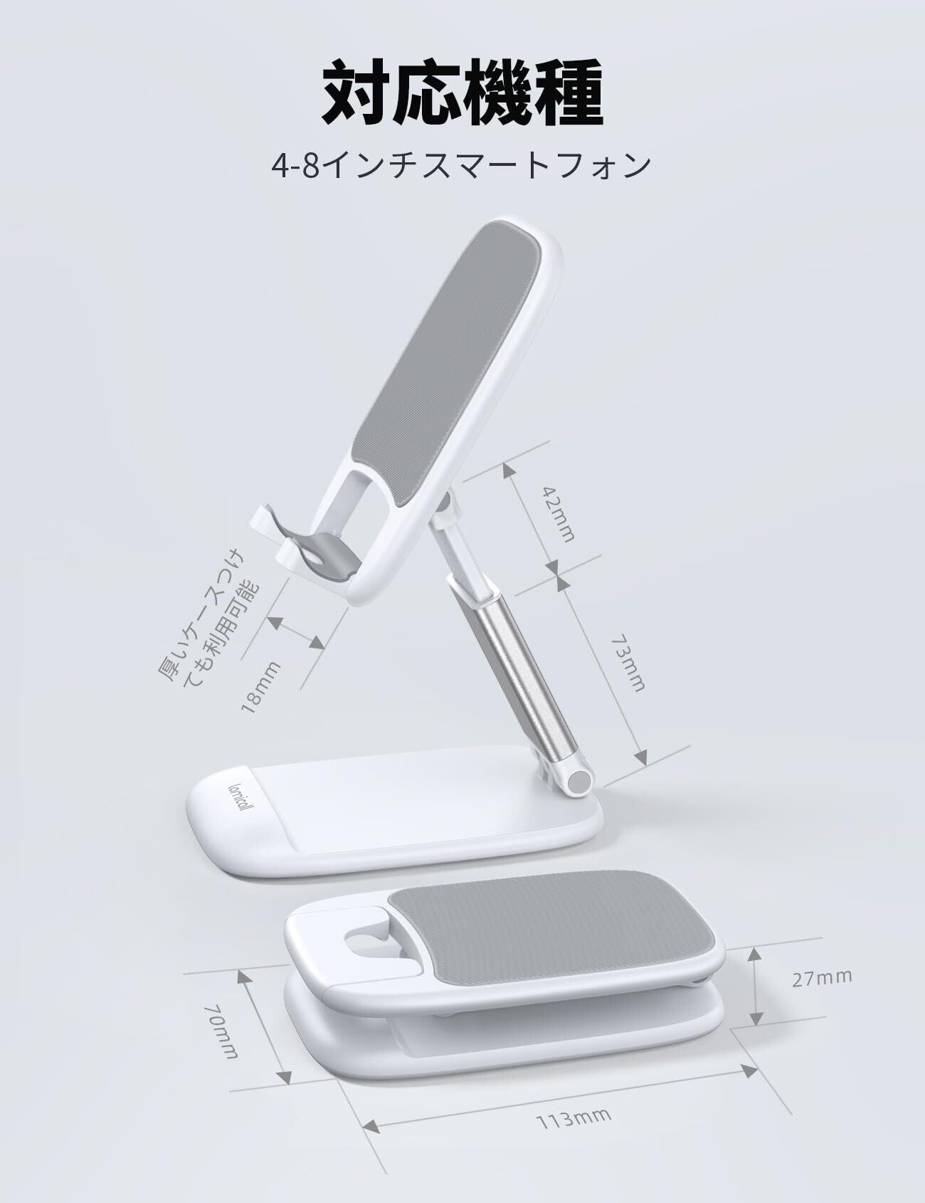 Lamicall 1個セット 折り畳み 高さ調整 スマホスタンド 伸縮 : 角度 折りたたみ 携帯 アイホン すまほ スマホ 立て 置き 台 卓上 机 つくえ デスク 縦 横 滑り止め コンパクト アイフォン スマフォ アンドロイド iPhone 16e 16 15 14 plus pro promax 13 mini プロ マックス se Huawei Xperia android に対応 白