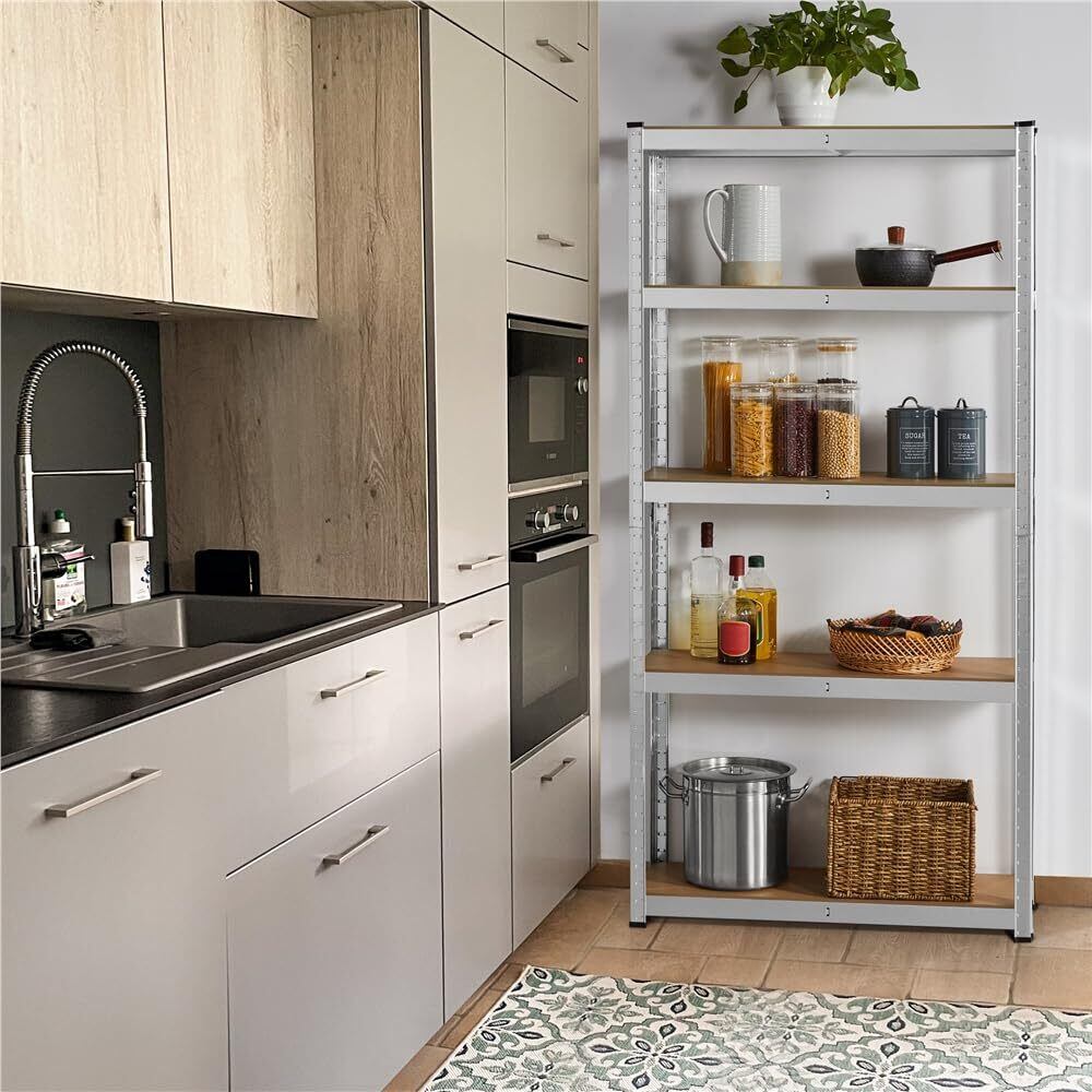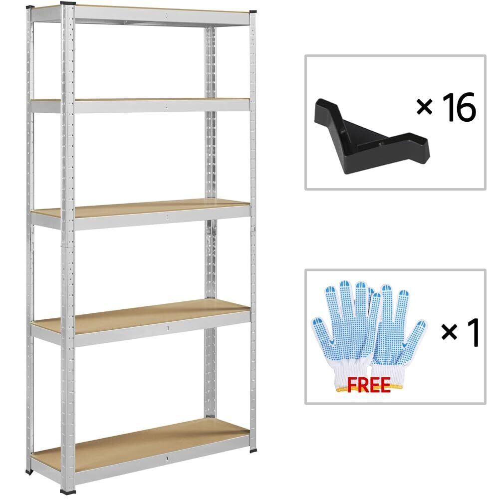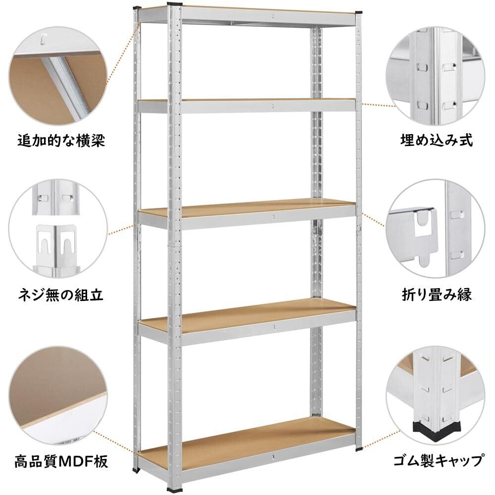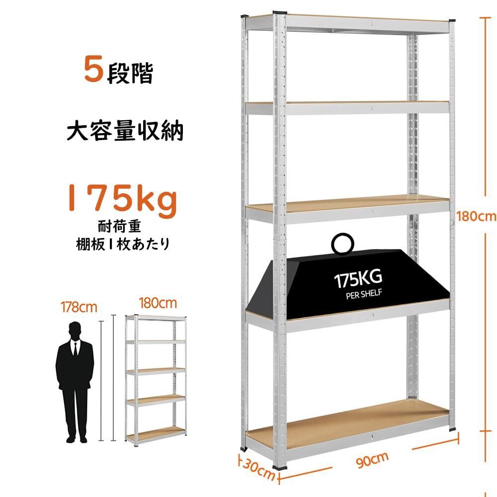 Yaheetech メタルラック スチールラック本体 幅90 5段 90×30×180cm 耐荷重875kg オープンシェルフ キッチンラック 収納棚 高さ調節可 ステンレスラック 収納ラック 防サビ加工 ネジなし 組立簡単 キッチン 物置 倉庫 ガレージ 手袋付き 大容量 シルバー