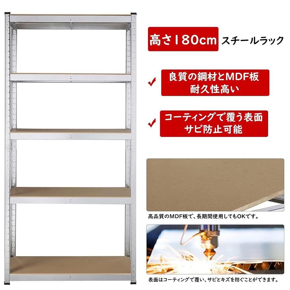 【丈夫な金属とMDF板】この収納棚は良質の鋼材とMDF板で仕上げられています。その鋼材でMDF板をしっかり固定できます。良質の鋼材でできているので、一枚棚板の最大荷重力は175kg(水平面に平均分布)です。段ごとの支え骨がしっかりとMDF板を固定しています。