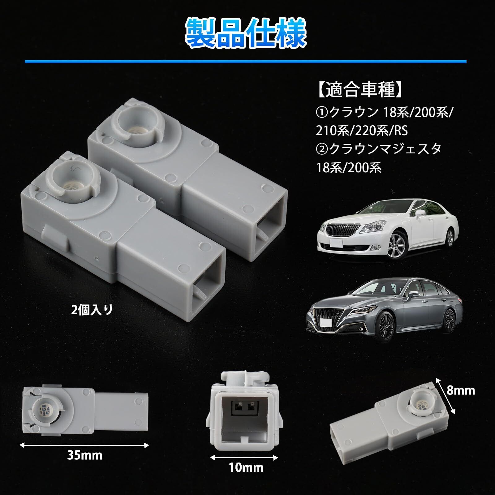 1.【適合車種】①クラウン 18系/200系/210系/220系/RS;②クラウンマジェスタ 18系/200系;※ご注意:車種・グレードによりインナーランプの配線が装備されていない場合があります。現車をご確認いただいたうえお買い求めください※。セット内容:led フットランプ 2PCSセット。
