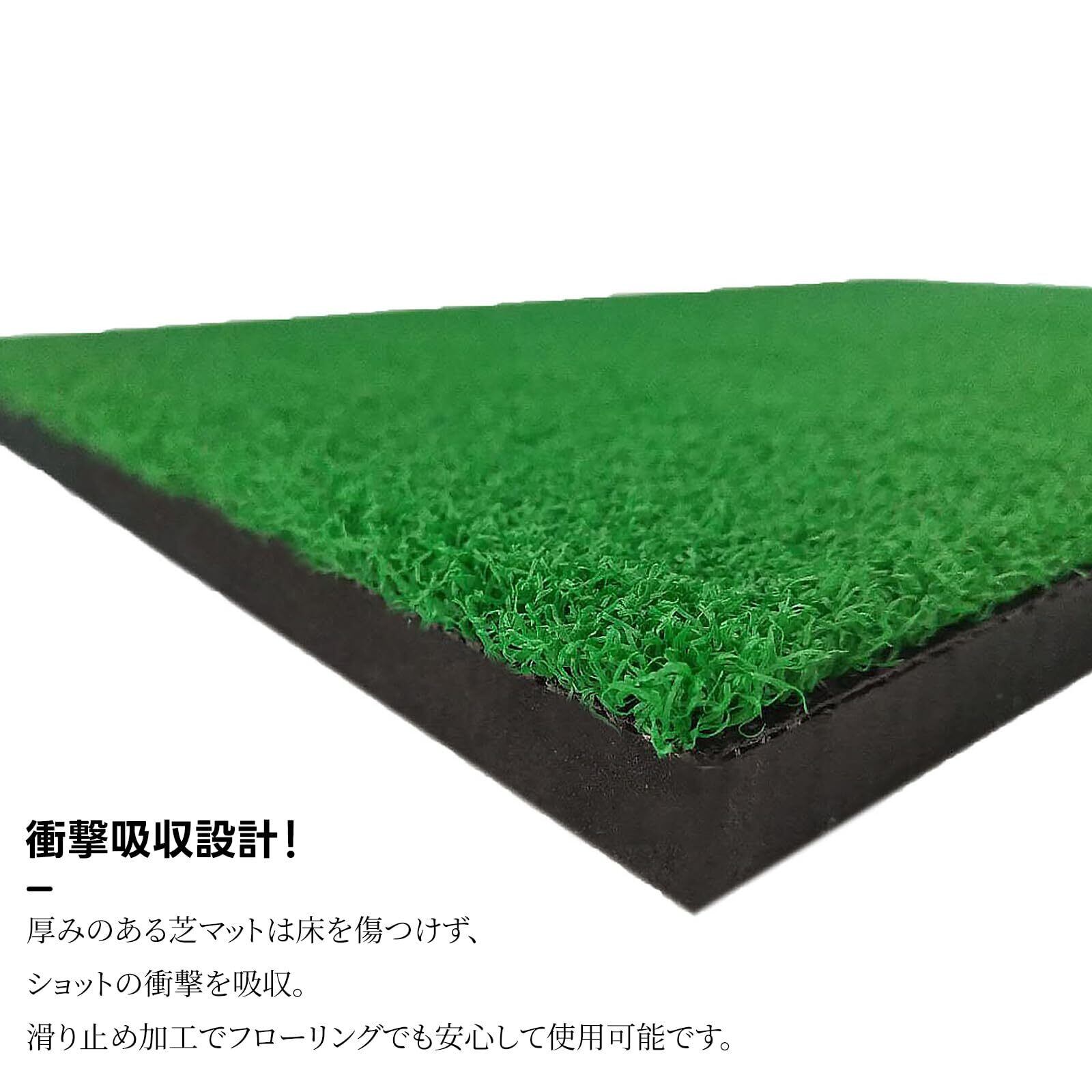 【衝撃吸収設計!】厚みのある芝マットは床を傷つけず、ショットの衝撃を吸収。滑り止め加工でフローリングでも安心して使用可能です。