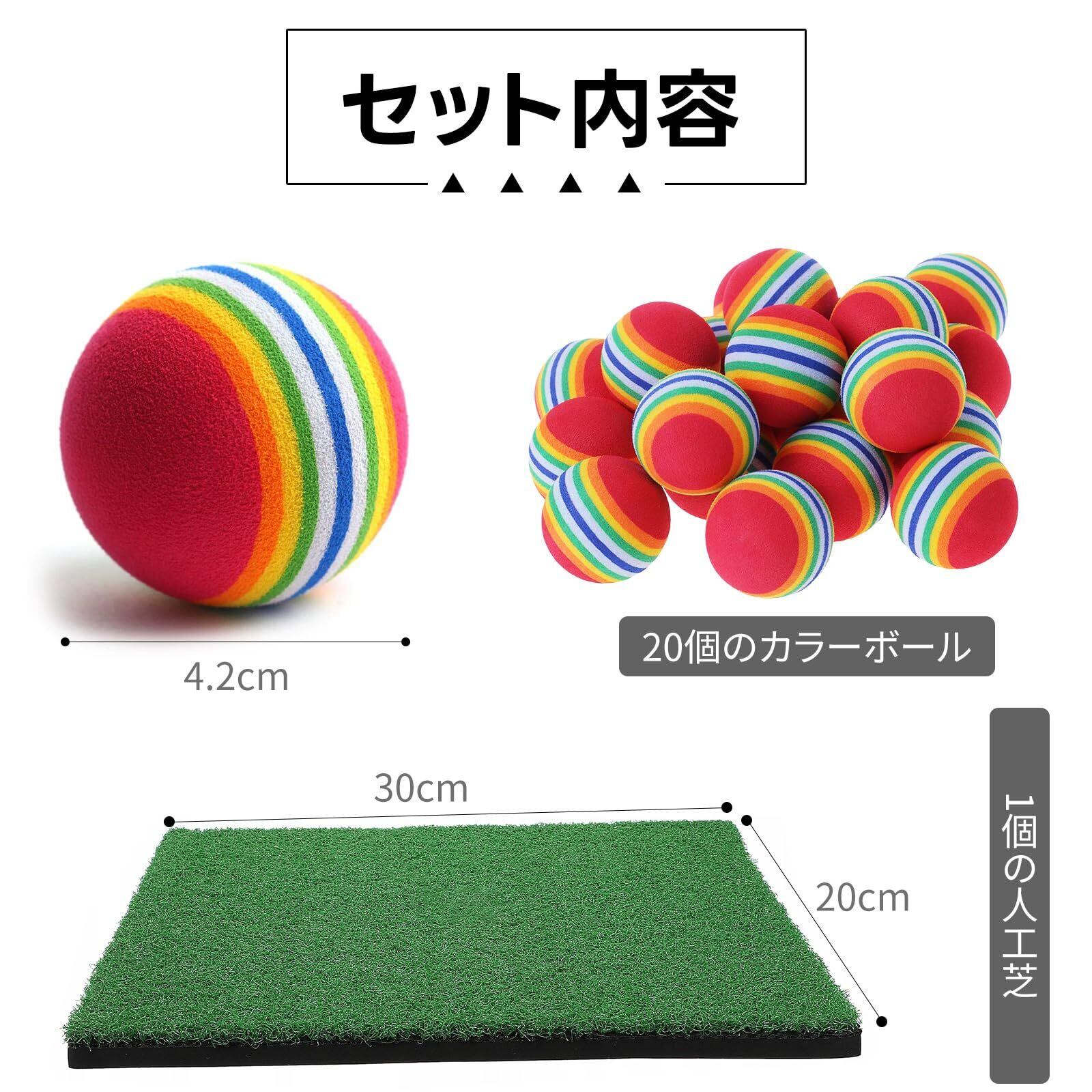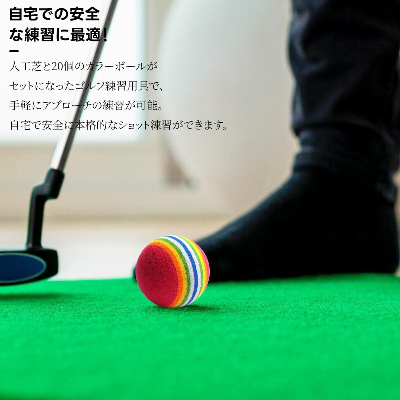 【自宅での安全な練習に最適!】人工芝と20個のカラーボールがセットになったゴルフ練習用具で、手軽にアプローチの練習が可能。自宅で安全に本格的なショット練習ができます。