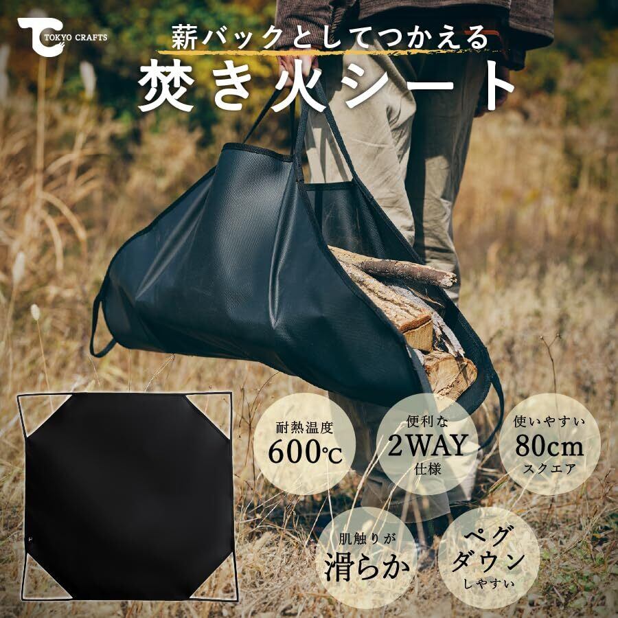 TOKYO CRAFTS 焚き火シート 80x80cm スパッタシート 薪バッグ チクチクしない ブラック 黒 耐火 耐熱 防炎 防火 キャンプ 芝生保護 焚き火台シート