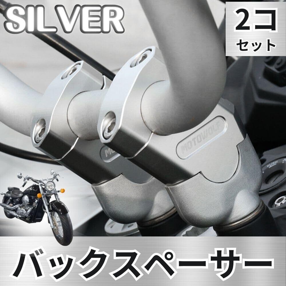 one+lifestyle バイク 22mm ハンドルバー用 バックスペーサー キット 2個 セット CNC アルミ ハンドル クランプ 銀 シルバー (シルバー)