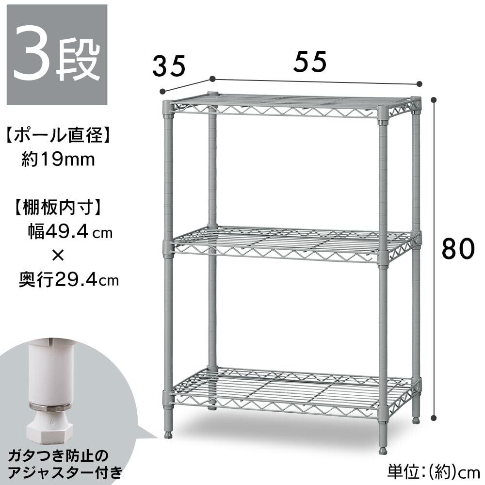 【幅55cm】3段 カラーメタルラック アイリス CMM-55083 ダークグレー スチールラック カラフルメタル カラーラック ラック 一人暮らし メタルラック 本体 オフィス収納