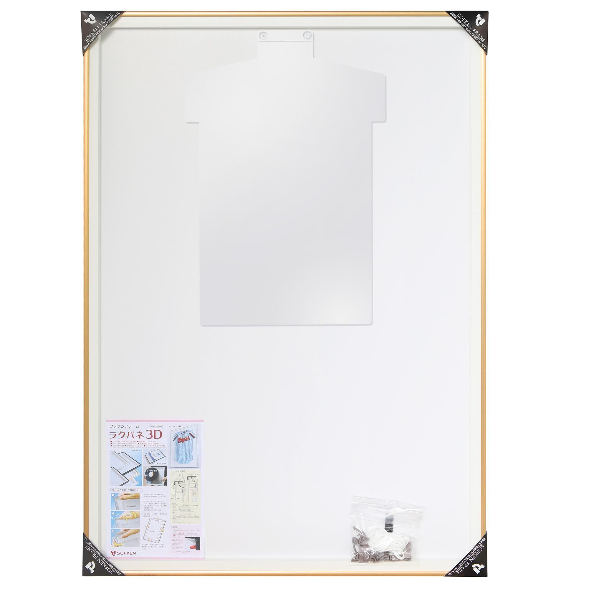 ソフケン(Sofken) アルミ額縁 ラクパネ3D ユニフォーム額 Lサイズ ゴールド 【軽量で作品セットが簡単、思い出のユニフォームやオリジナルTシャツなどをディスプレイ、透明樹脂ハンガー付き】