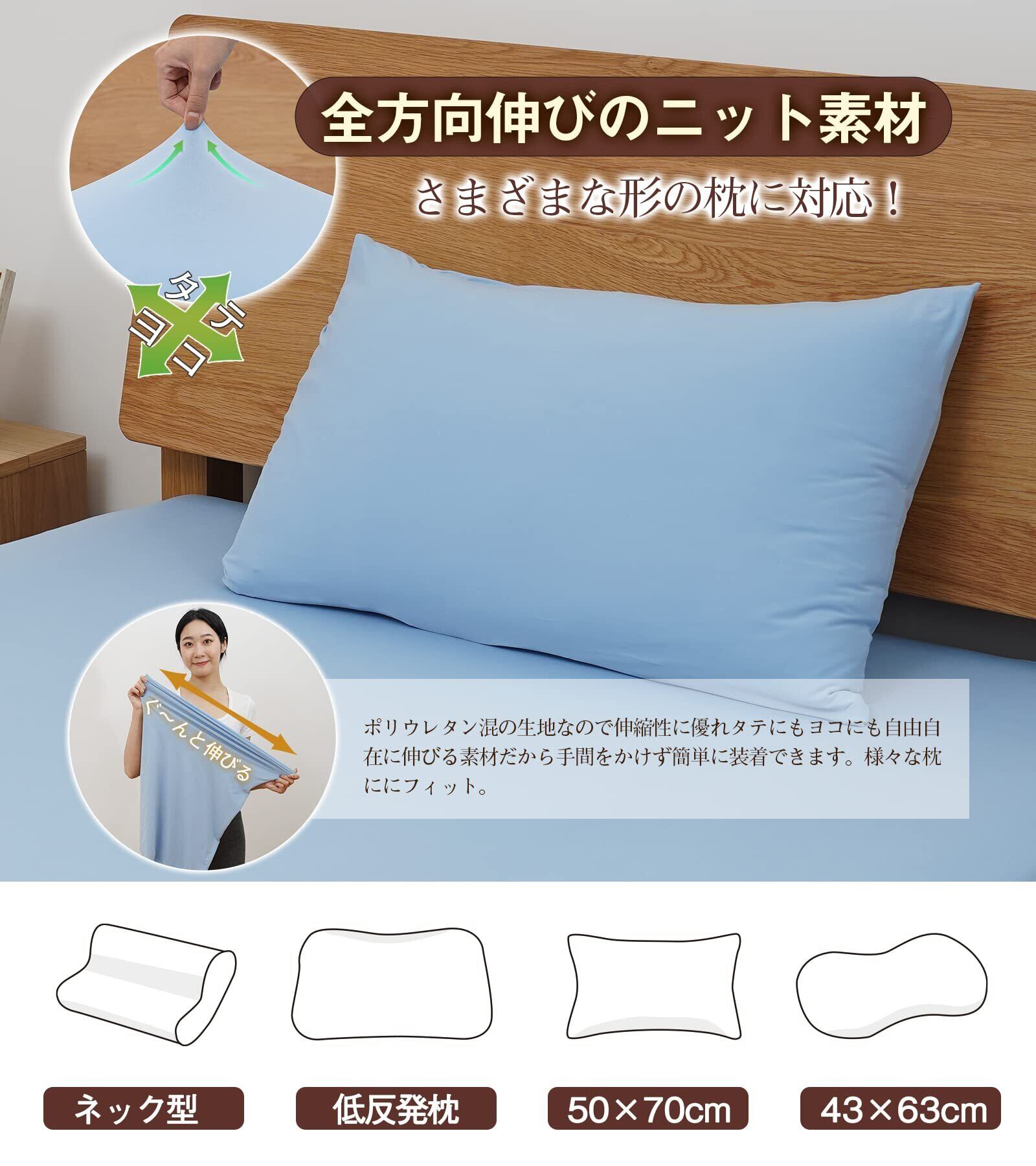 【3D伸びる・Tシャツ肌触り】枕カバー のびのび 枕カバー 2枚セット まくらカバー オールシーズン Tシャツ素材 封筒式 ピローケース 柔らかい ピローカバー さらさら肌触り 枕かバー 吸汗速乾 抗菌防臭 (枕カバー 43 63 CM ブルー)
