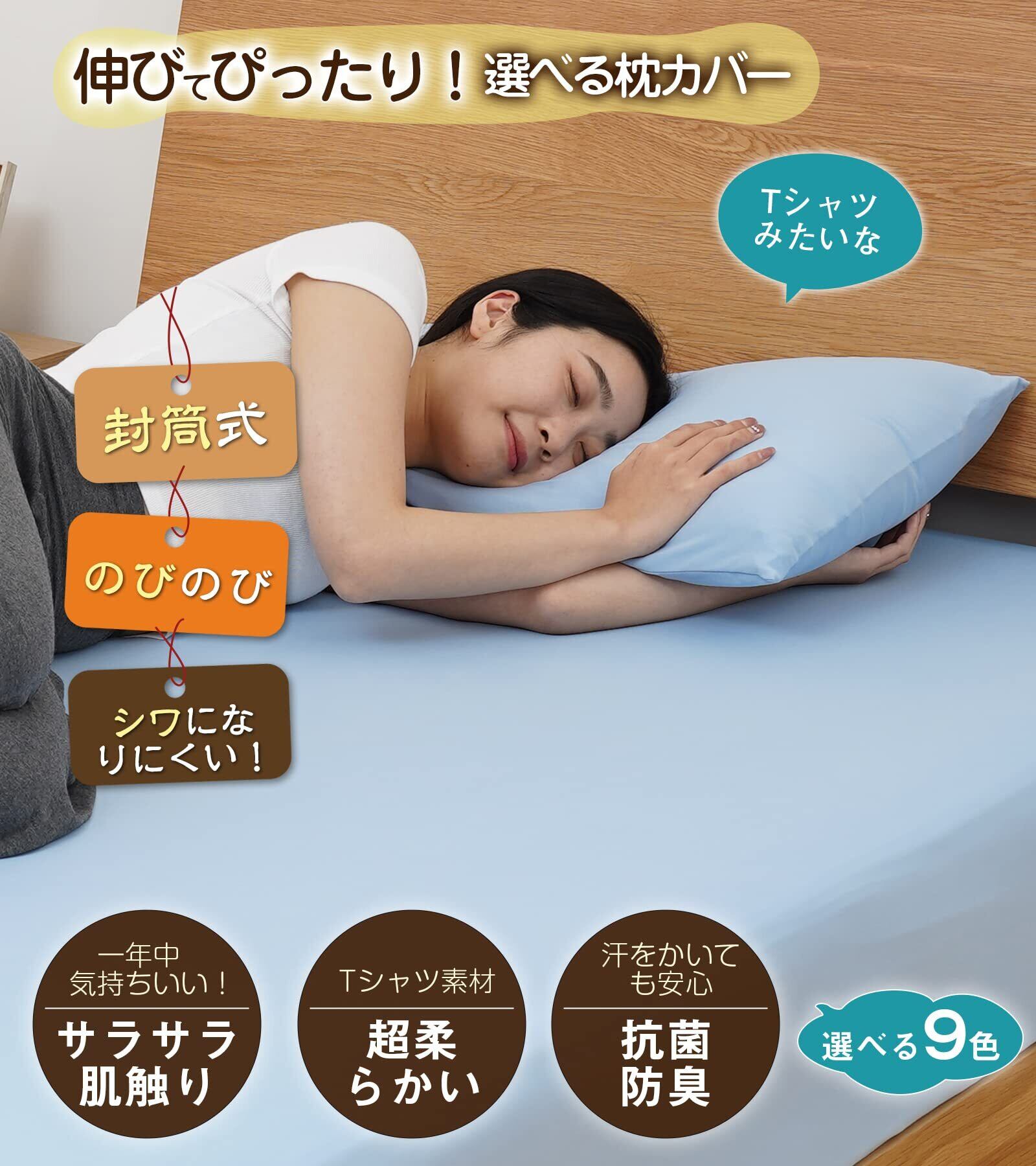 【超柔らかいTシャツ素材&オールシーズン快適】枕カバーの生地はまるでおTシャツのようで柔らかくなめらかな肌触りで心地よく、最初から肌になじむように仕上げました。肌への引っ掛かりを感じづらいので、肌あたりが気にならず心地よくお休みいただけます。暖かい季節( 春 夏 )も、寒い季節( 秋 冬 )も 1年を通して長い期間、快適にお使い頂けます。