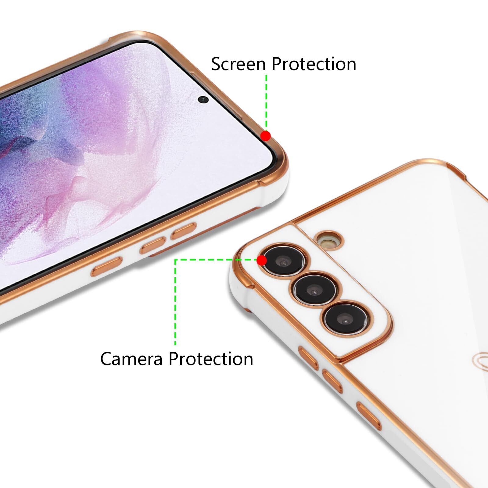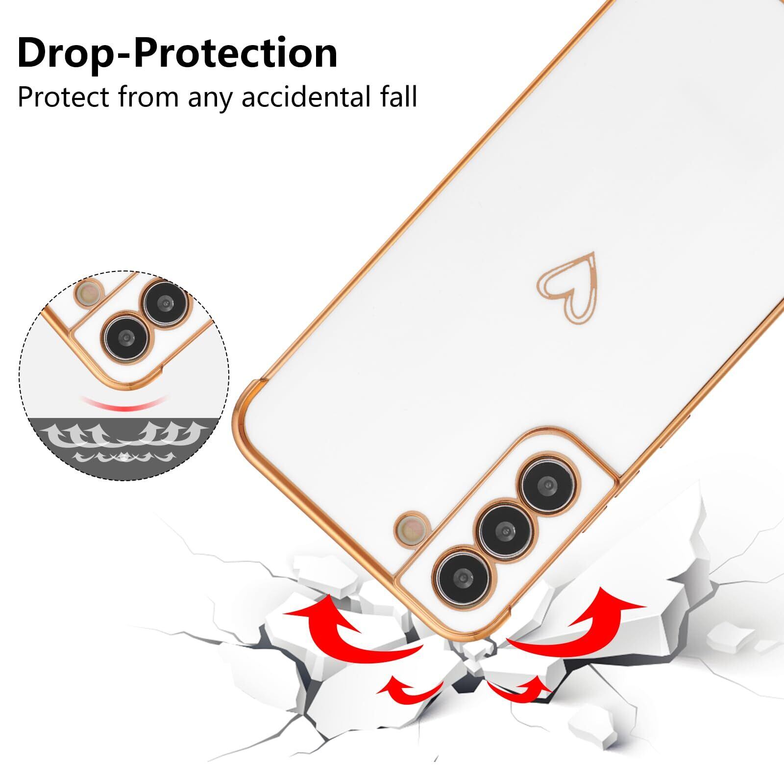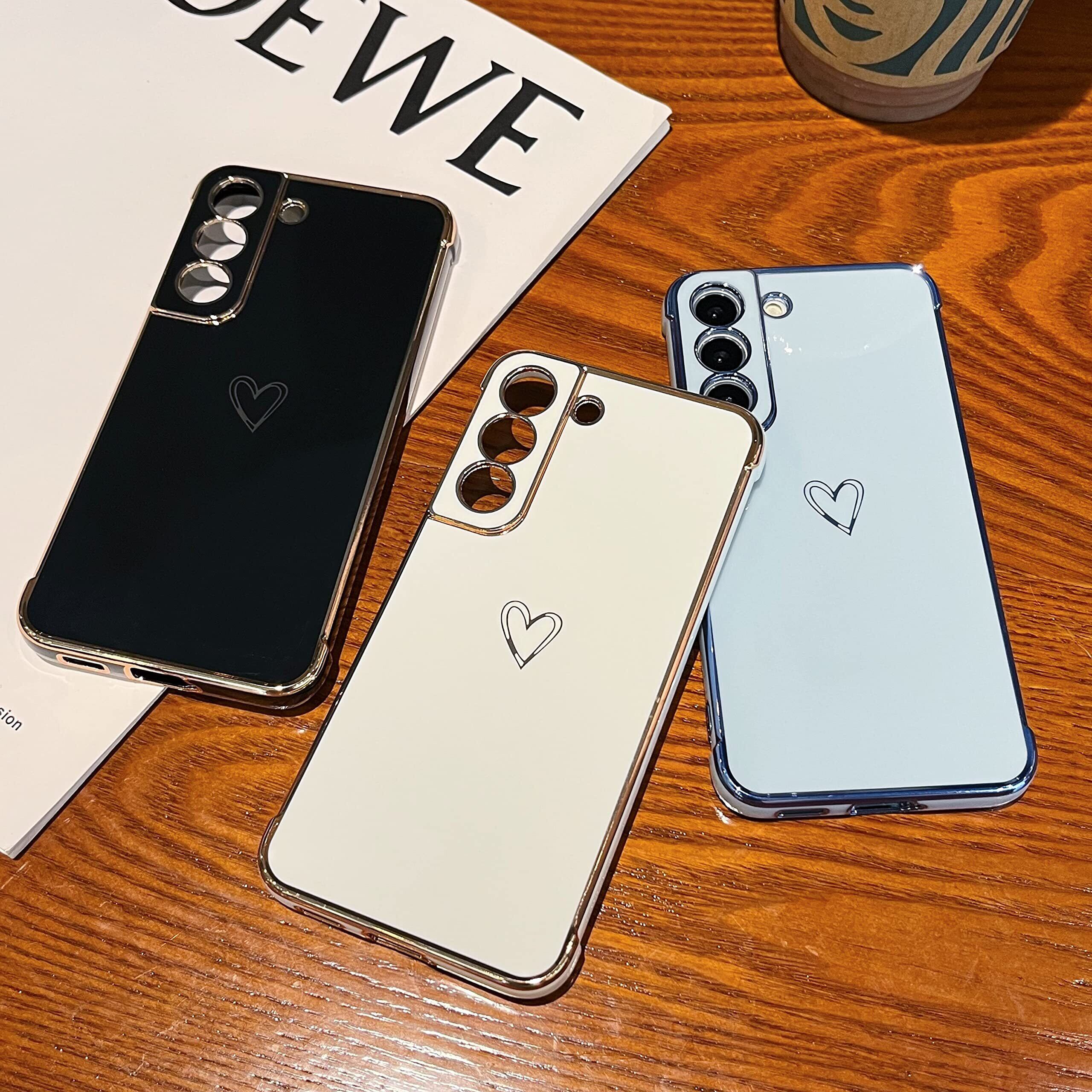ZTOFERA Samsung Galaxy S22 5G用 ハートケース サムスン ギャラクシーs22 おしゃれ 韓国 可愛い カバー 柔軟な TPU シリコン メッキ加工 ソフト 軽量 耐衝撃 ギャラクシー S22 ケース 心パターン 女性 スマホケース ワイヤレス充電対応 (ホワイト)